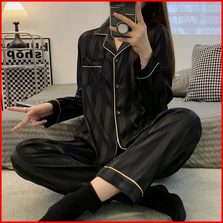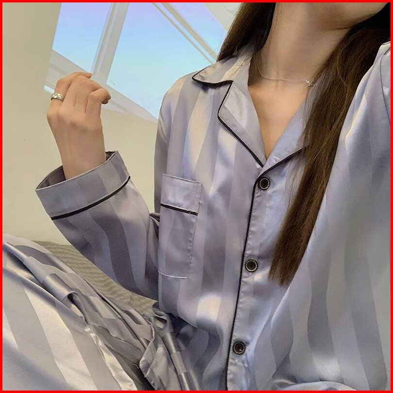 2024 Pakaian Rumah Piyama Sutra Es Sutra Korea Bergaris Baru