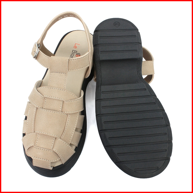 Le Bianca Aa 25-04 Sepatu Sandal Wanita Bustong Tertutup Platform Wedges Anyaman Produk Lokal Hijau