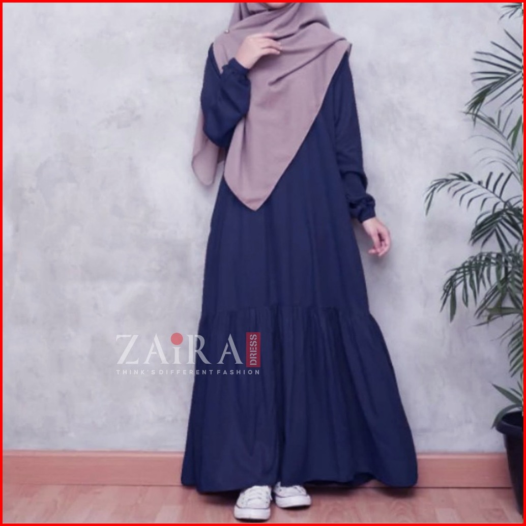 Zaira Dress Gamis Abaya Wanita Serut Bawah Lengan Karet Basic Abaya Polos Lengan Karet Ukuran S M L Xl Xxl