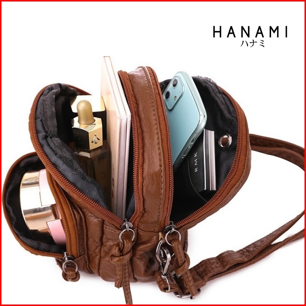 Hanami Tas Selempang Wanita Kulit Hecana Sling Bag Premium Korea Coklat Remaja Simple Branded Murah