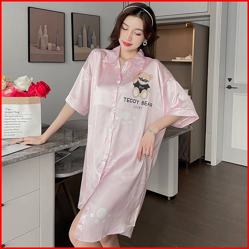 2025 Piyama Baru Wanita Lengan Pendek Beruang Lucu Beruang Senior Rasa Tidur Rok Rok Rumah Kartun Wanita Pakaian Rumah B