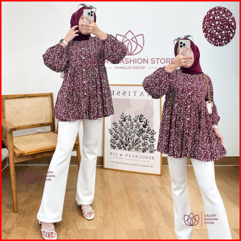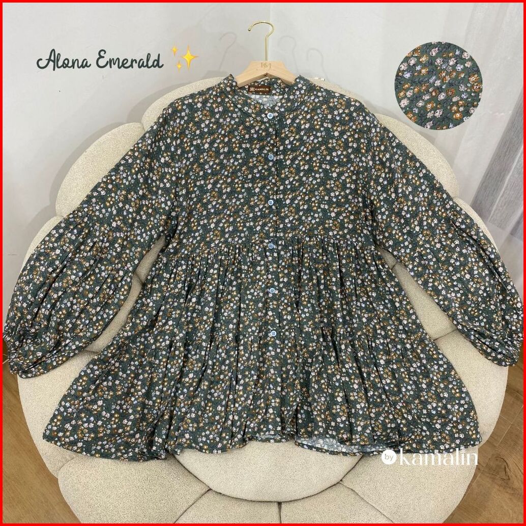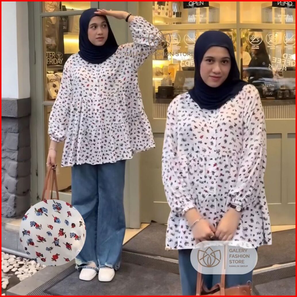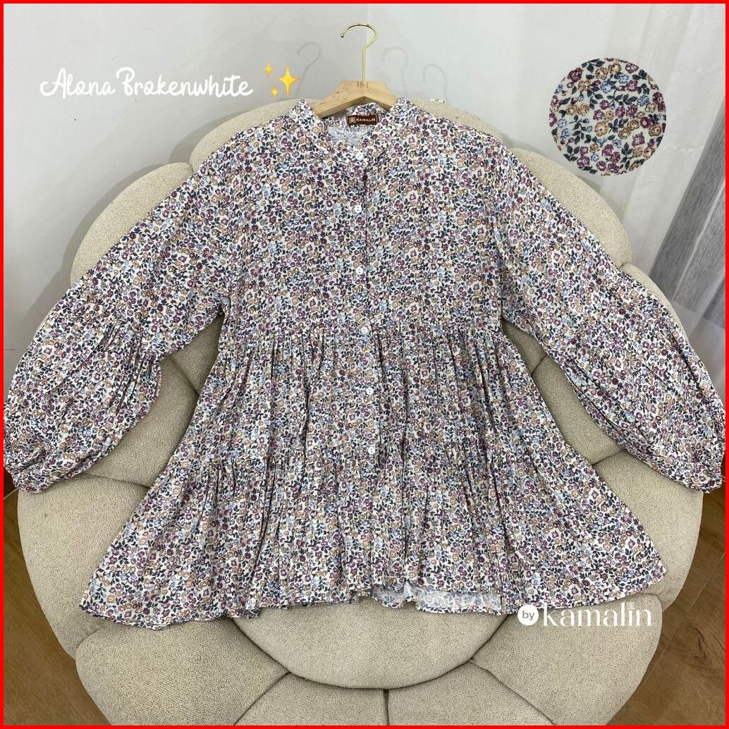 Blouse Ruffle Rayon Jumbo Busui Kancing Lengan Balon Alona By Kamalin