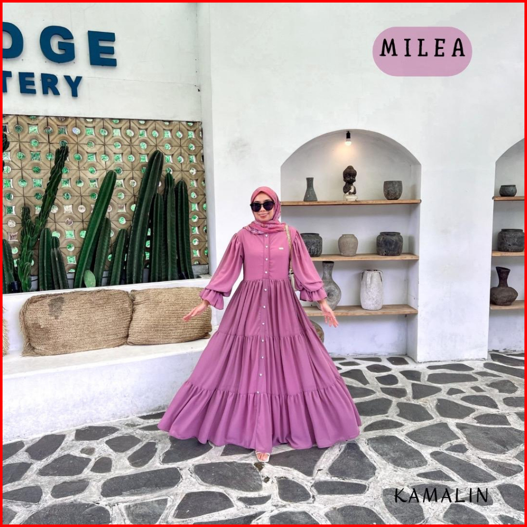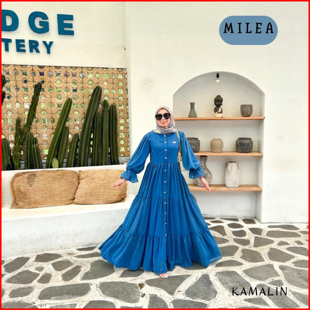 Milea Gamis Ceruty Motif Lebar Mayung 3 Meter Busui Dress Lebaran Kondangan