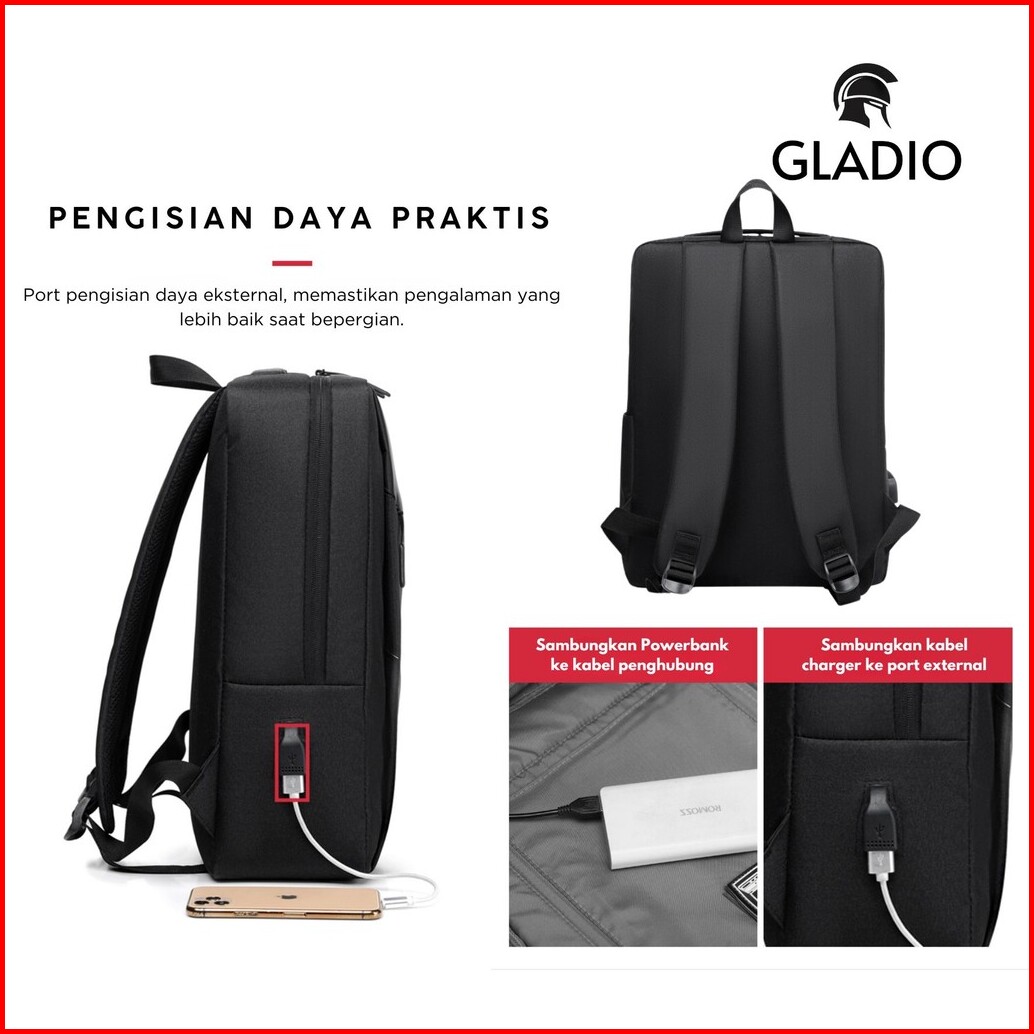 Gladio Tas Ransel Pria Griamore Hitam Anti Air Premium Japan Style Muat Laptop Backpack Gld007b5