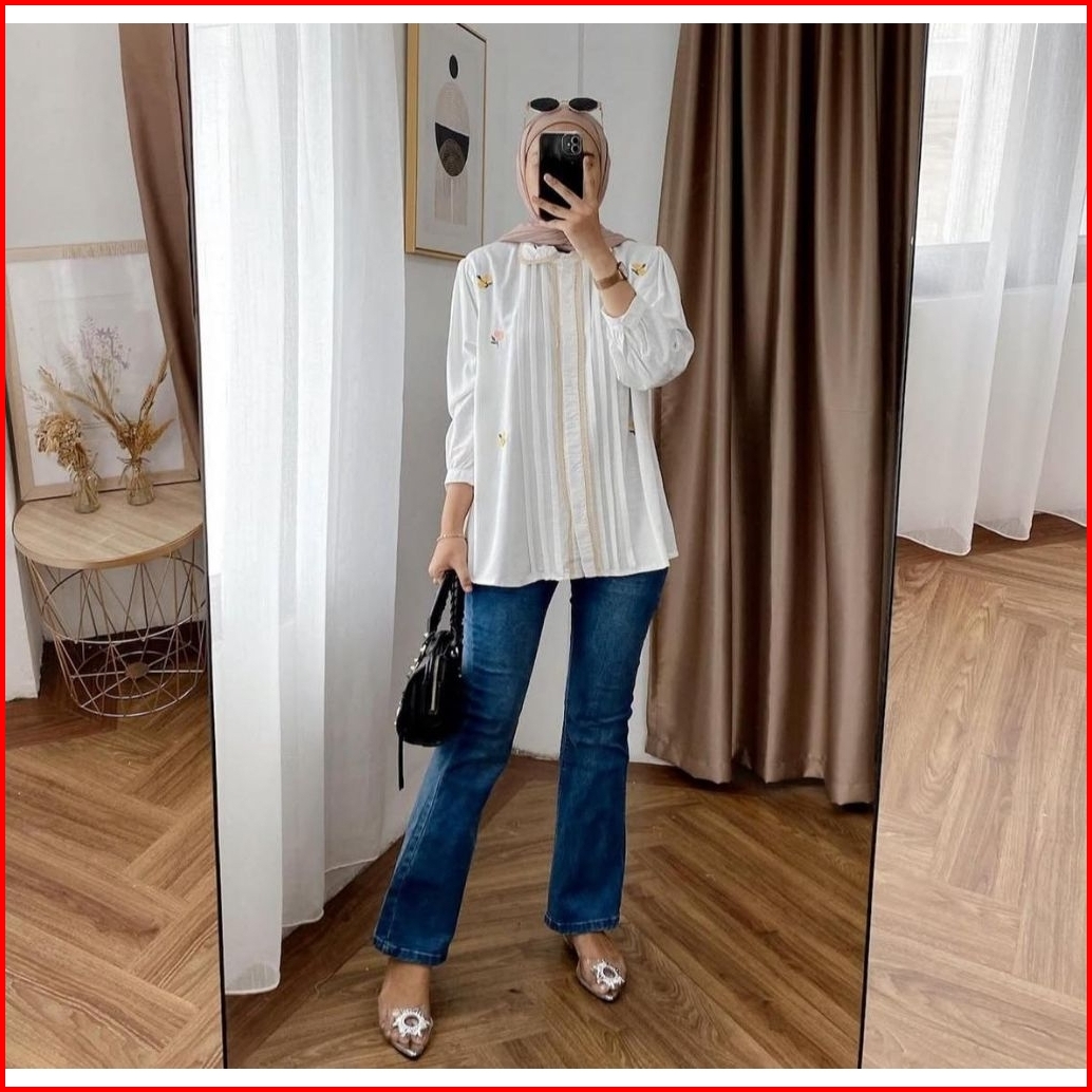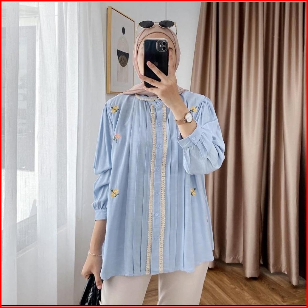 Ananta Blouse Bordir Linen Rami Berkerah Maron
