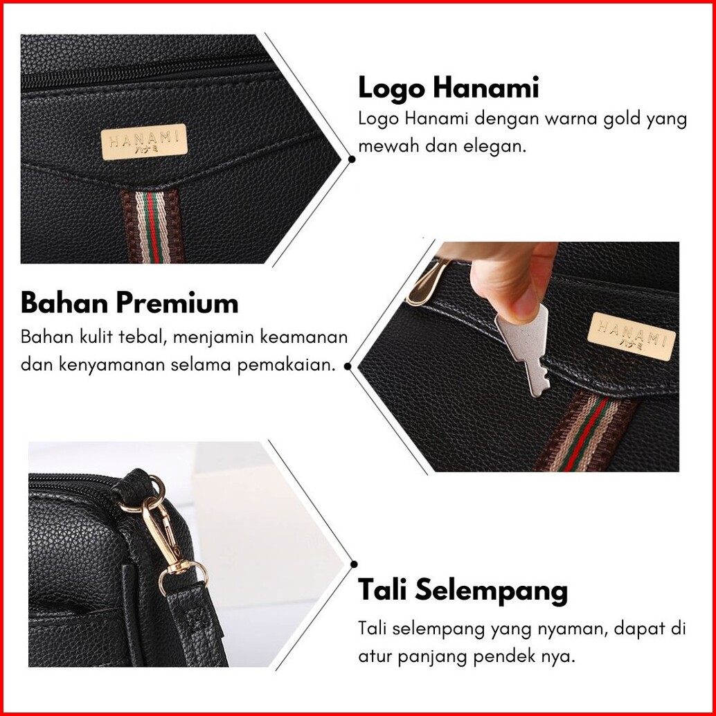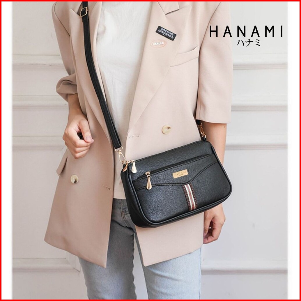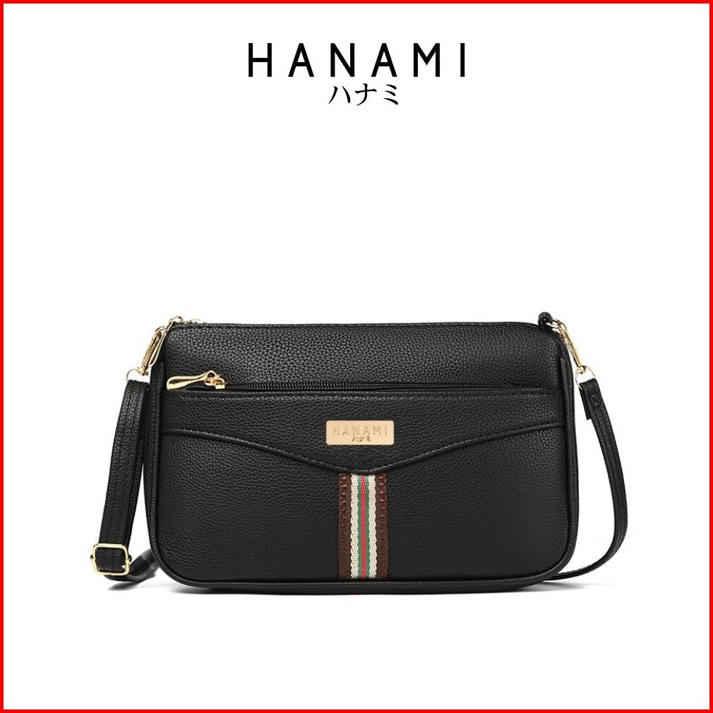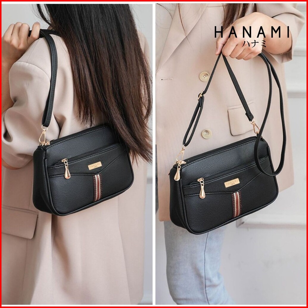 Hanami Tas Selempang Wanita Neona Hitam Kulit Branded Mewah Elegan Cantik Remaja Premium Ta1072b5