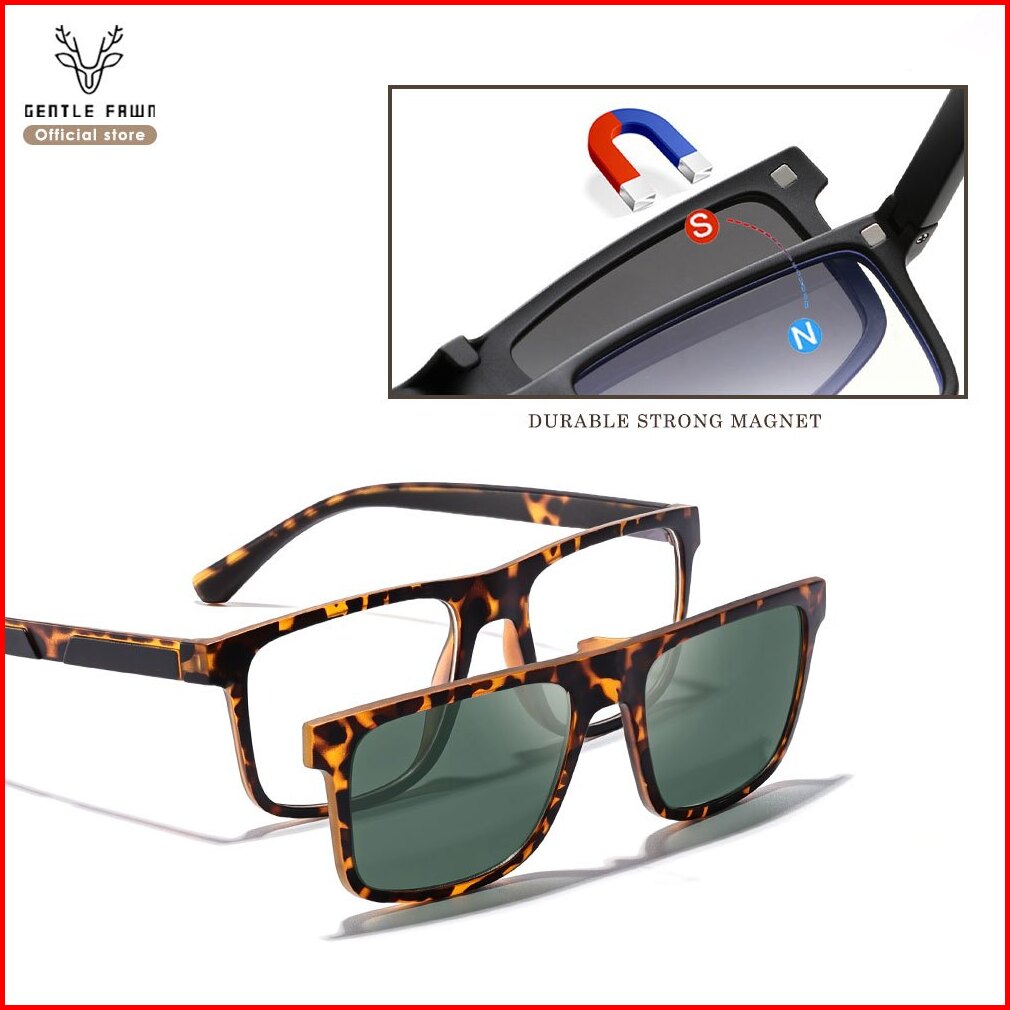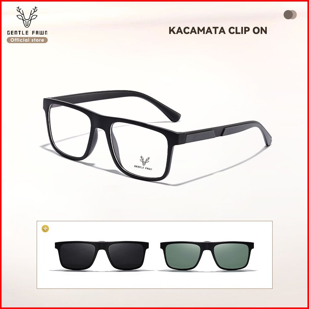 Gentle Fawn Kacamata Clip On 2in1 Free Clip Lens Polarized Anti Silau Bentuk Kotak Bahan Tr90 Ringan Kokoh Bisa Minus 00