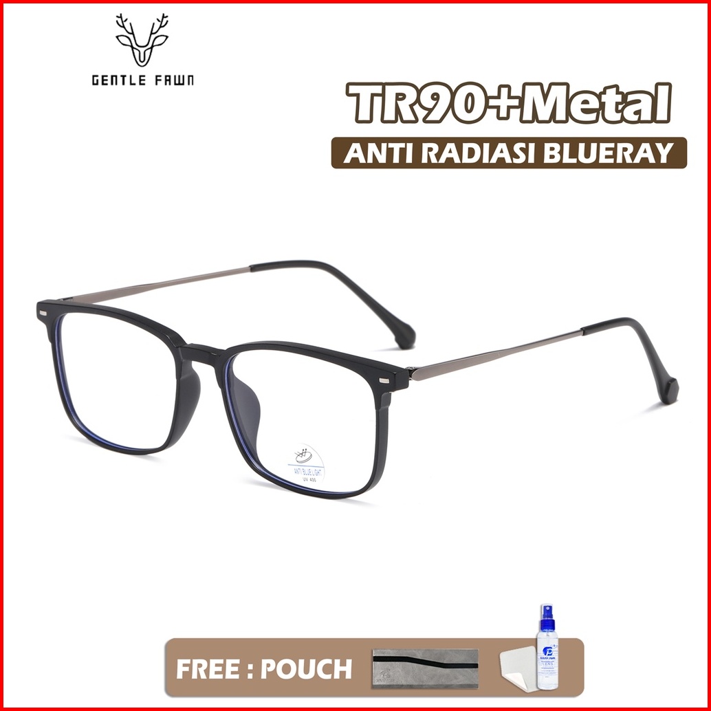 Gentle Fawn Kacamata Antiradiasi Blueray Style Tebaru Kotak Tr90 Metal Bisa Minus Frame Design Simple Fashion Wanita Dan