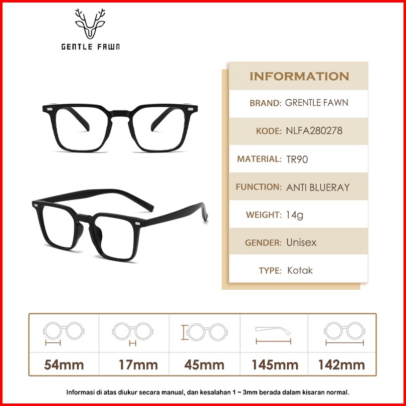 Gentle Fawn Kacamata Antiradiasi Blueray Anti Uv Kotak Style Bisa Minus Tr90 Lentur Fashion Pria Dan Wanita 280278