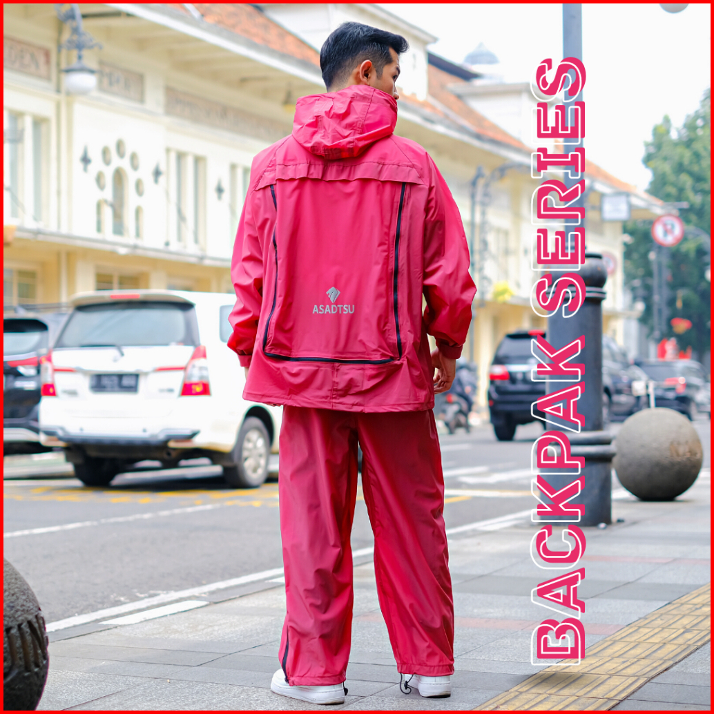 Asadtsu Marun Jas Hujan Ransel Backpack Besar Setelan Dewasa Pria Wanita