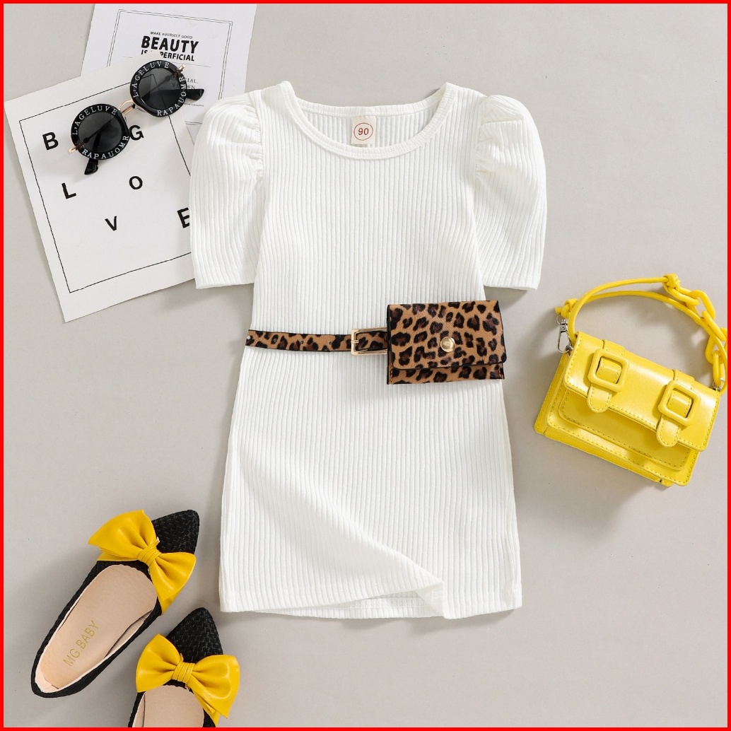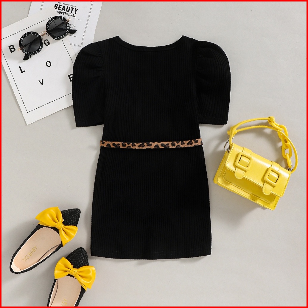 Kd71 Free Belt Bag Dress Anak Perempuan Simple Silhouette Black White