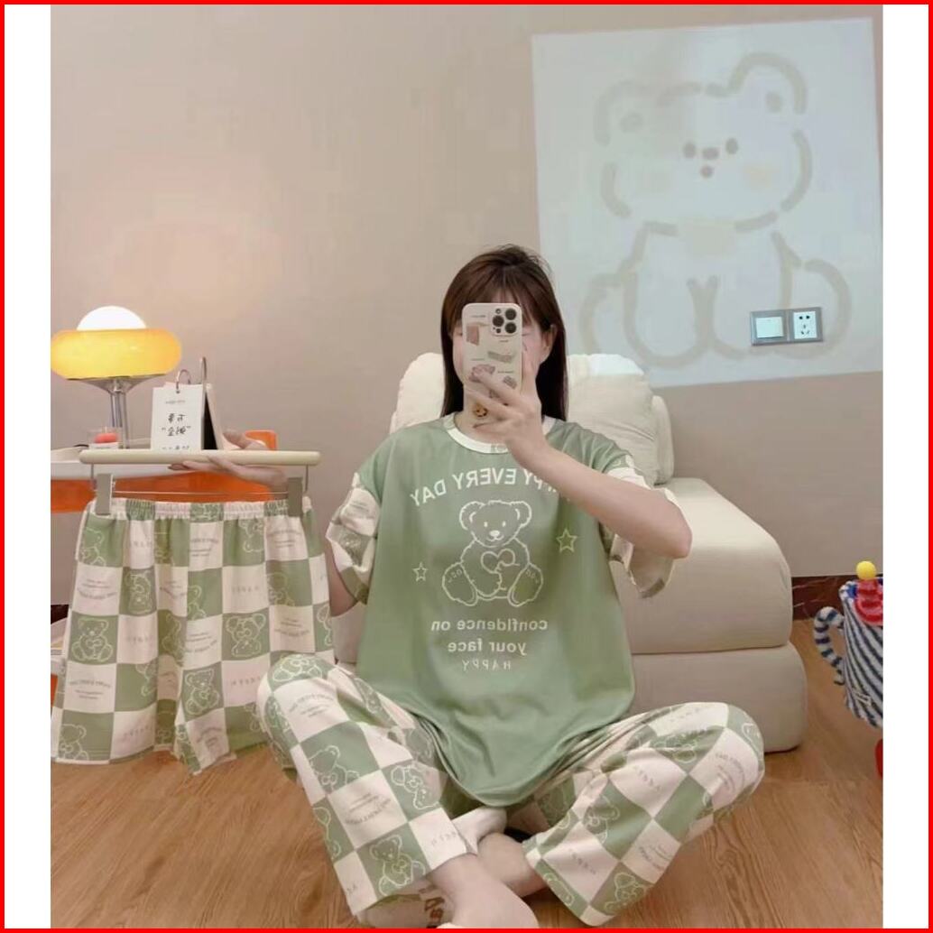Mk Baju Tidur Wanita 3 In 1 Set Piyama Bahan Kaos Celana Panjang Adem Enak Pakai Buat Santai Mk 013