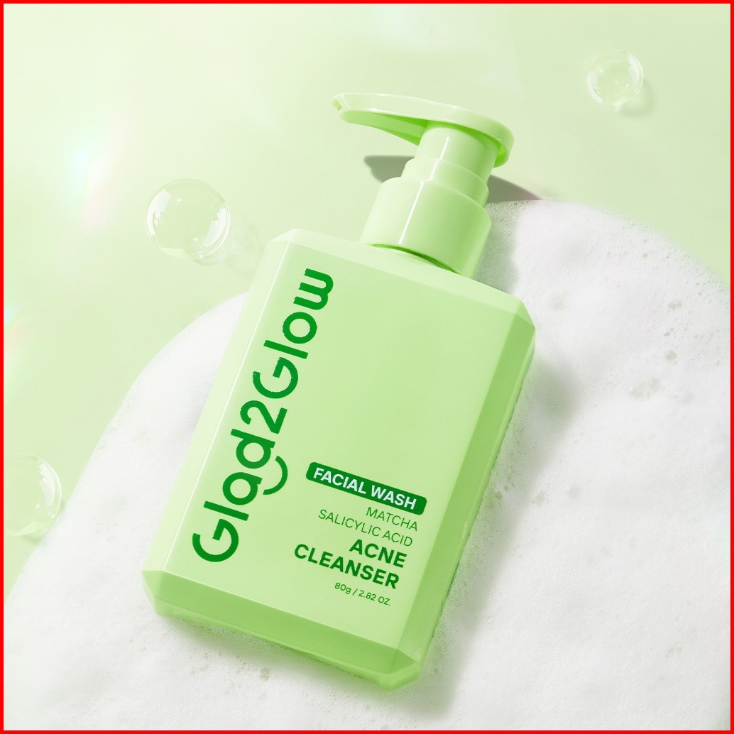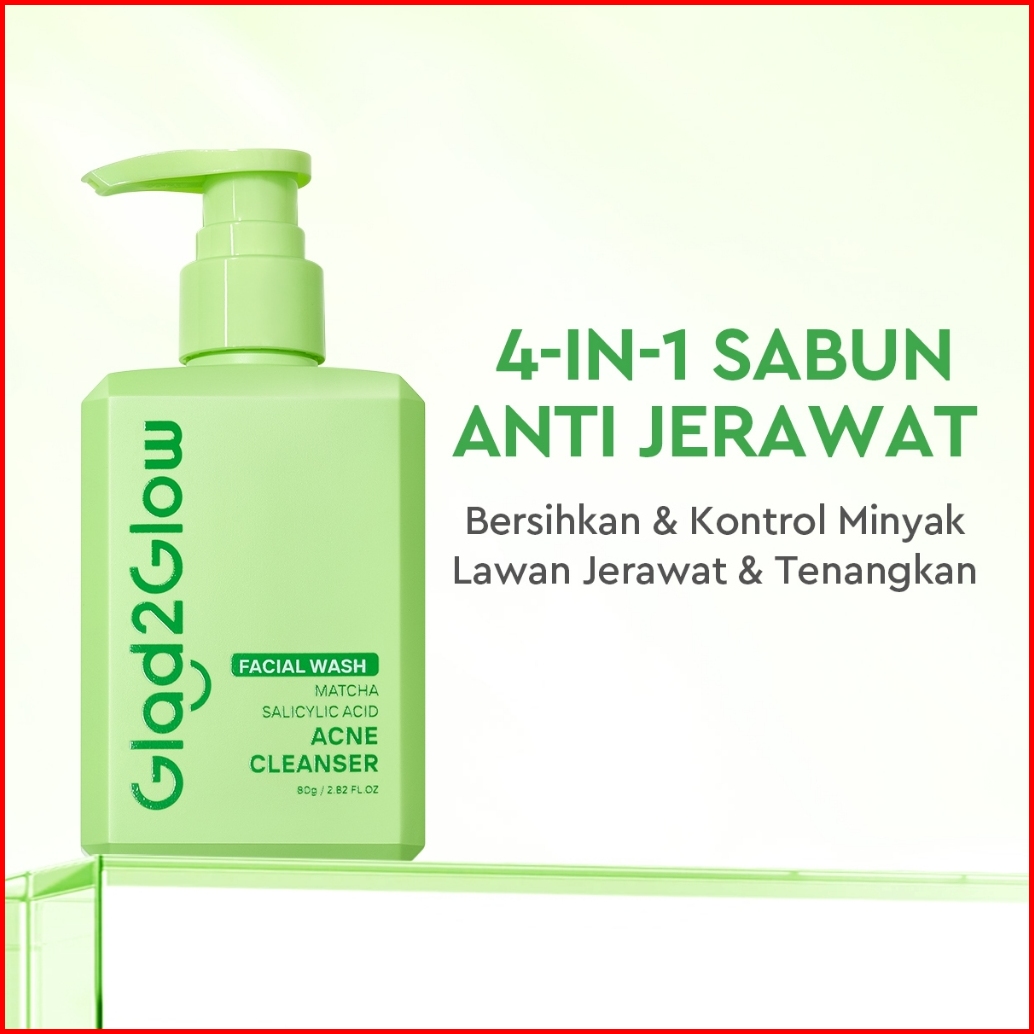 New Launch Glad2glow Matcha Salicylic Acid Acne Facial Cleanser 80ml Anti Jerawat Kontrol Minyak Face Wash Oily Acne Pro