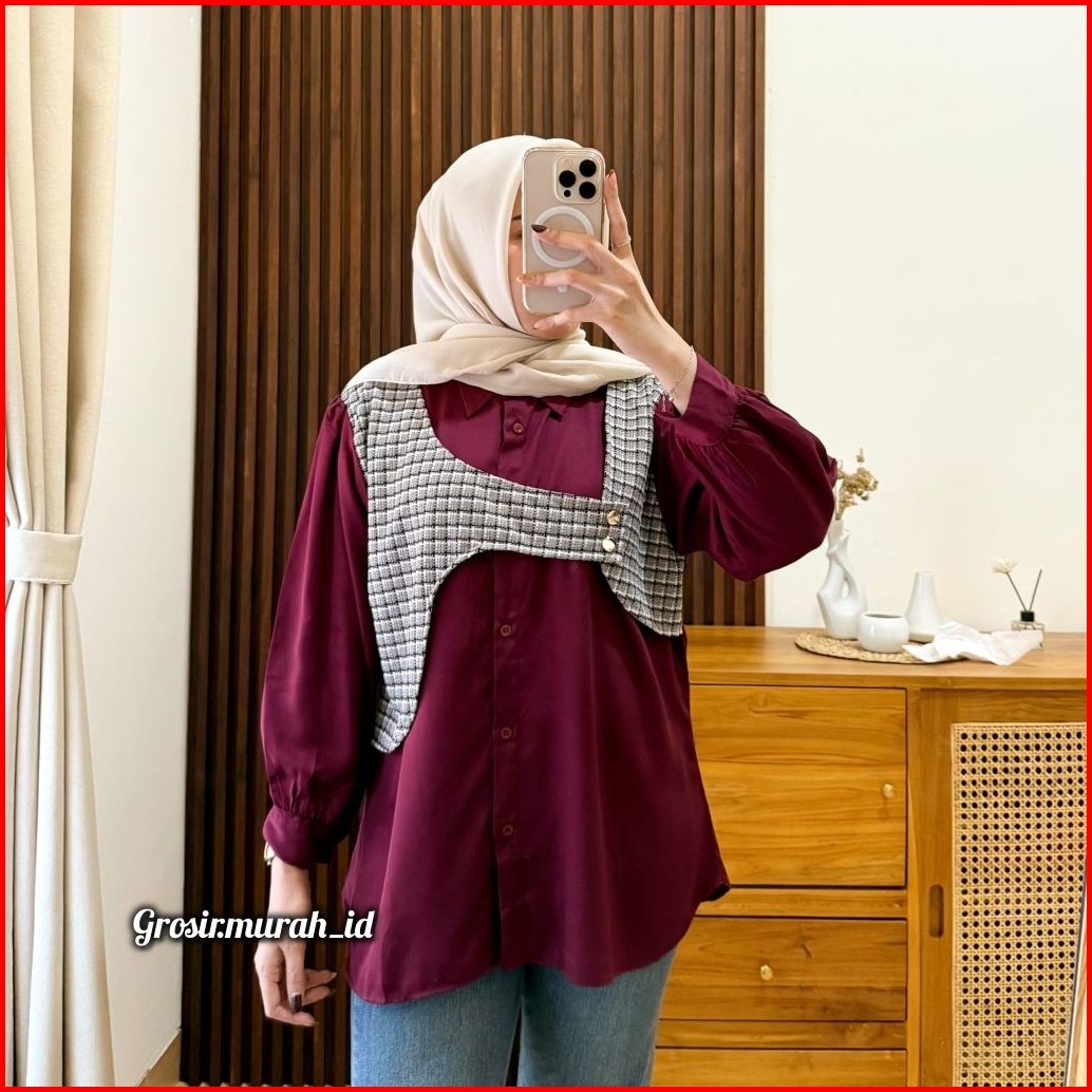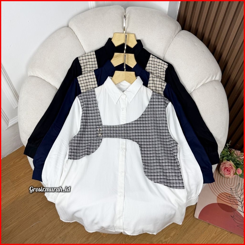 Quuena Blouse Basic Rayon Twill Kombinasi Tweed