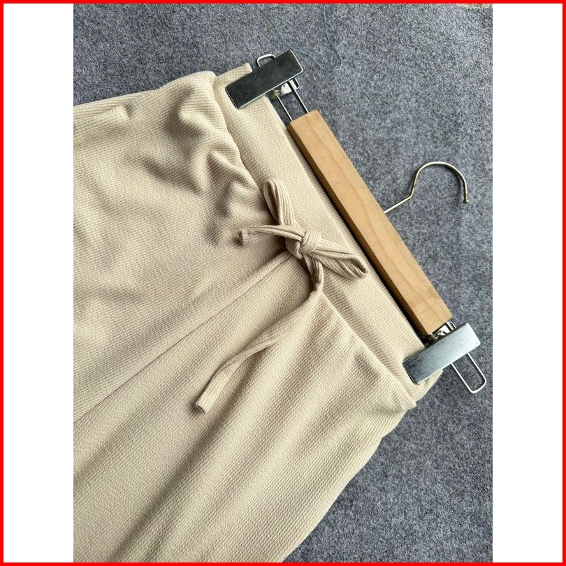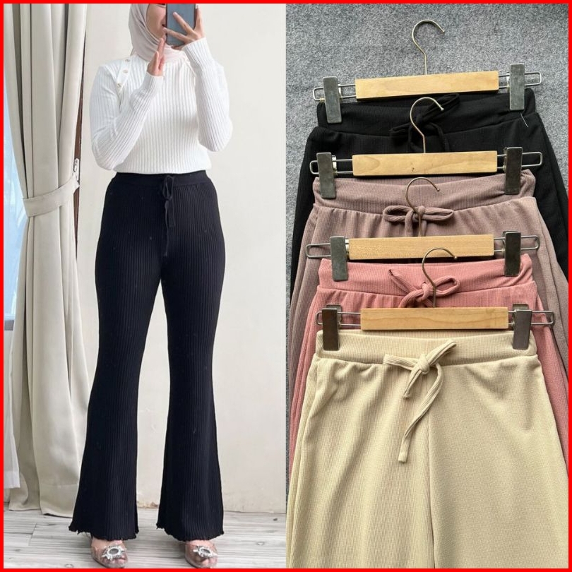 Gimela Celana Cutbray Knit Hitam Cream Latte Dusty