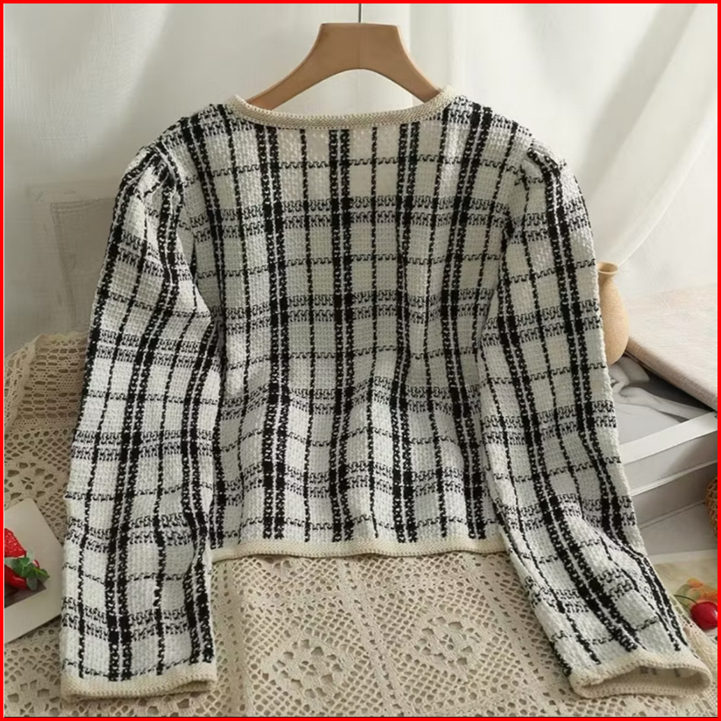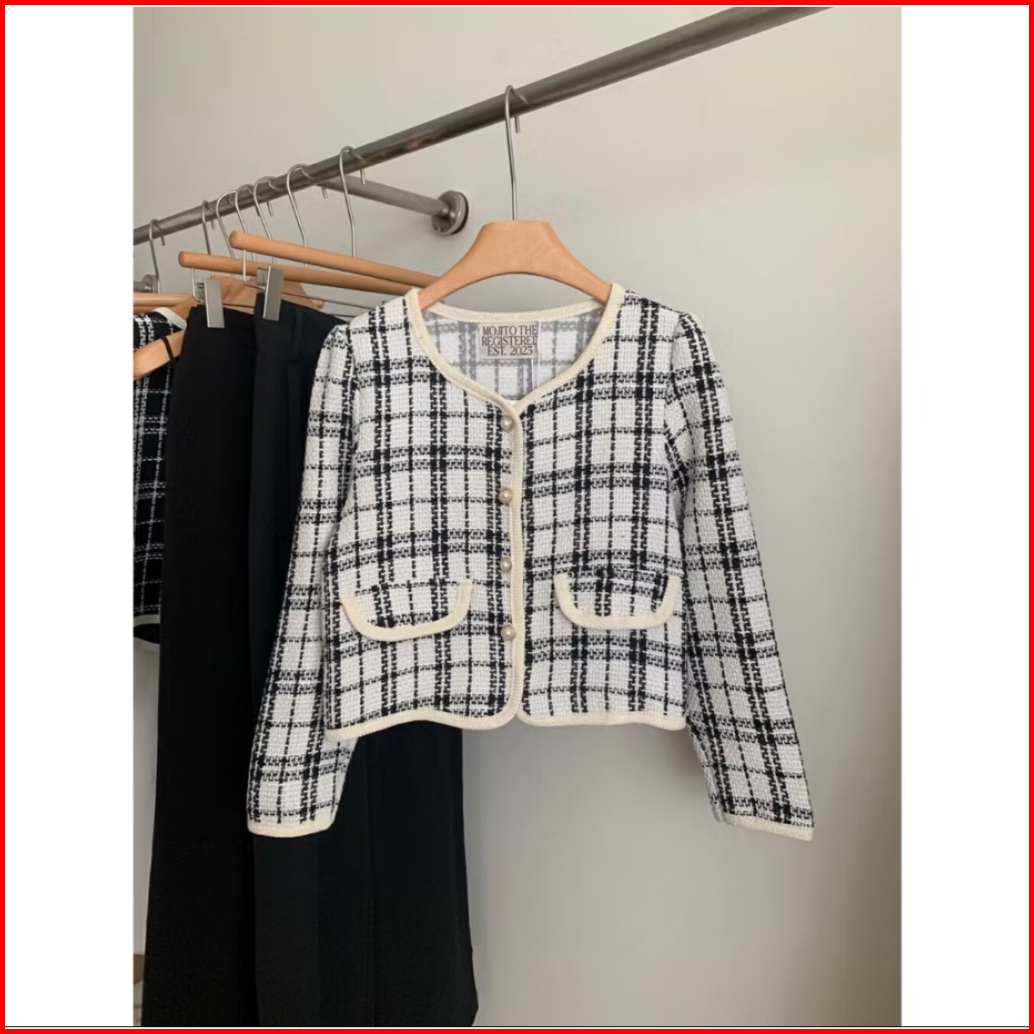 Cardigan Blazer Garis-garis Hitam Putih Outer Wanita Knitwear Casual Panjang Baju Tebal Atasan