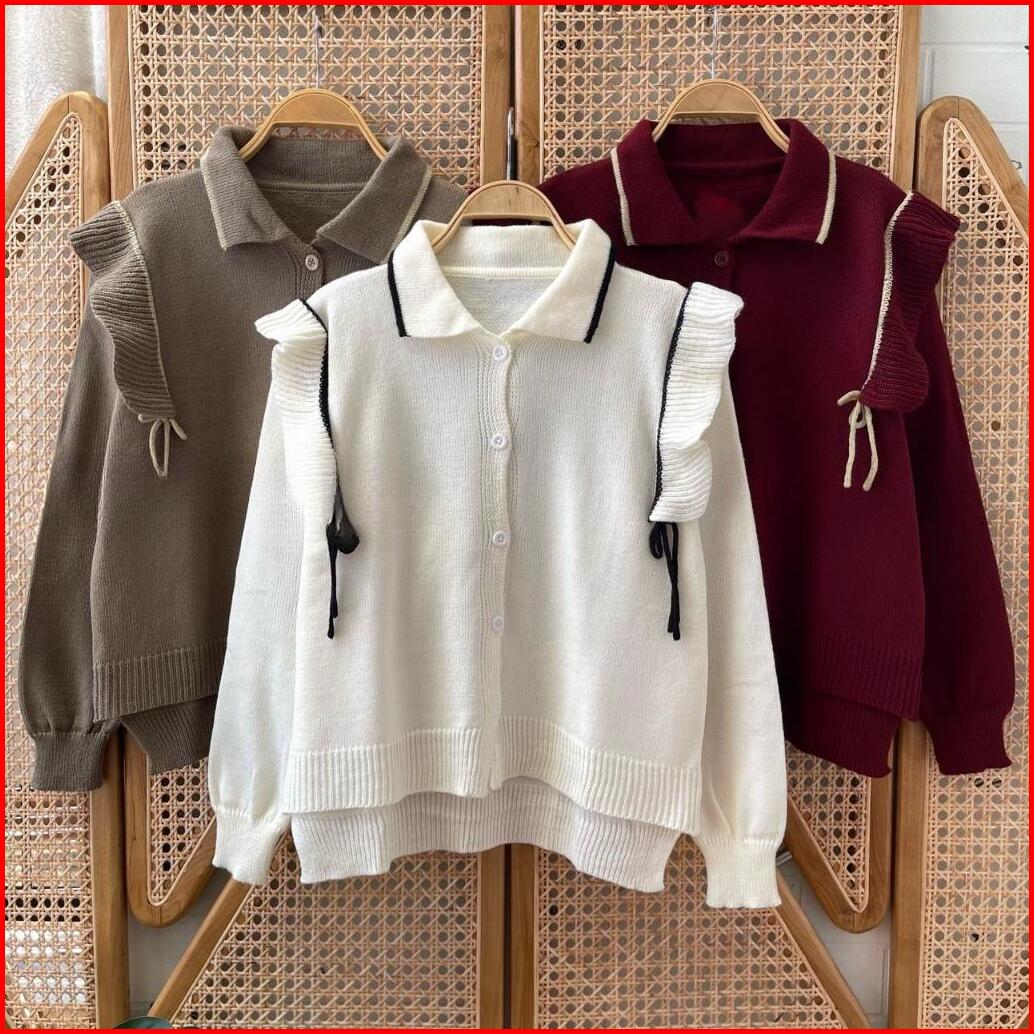 Atasan Alidah Cardigan Rajut Kancing Motif Tali Wanita Lengan Panjang Kekinian Korean Style Wanita