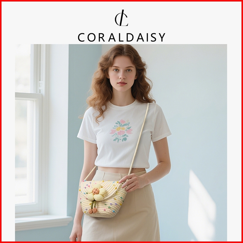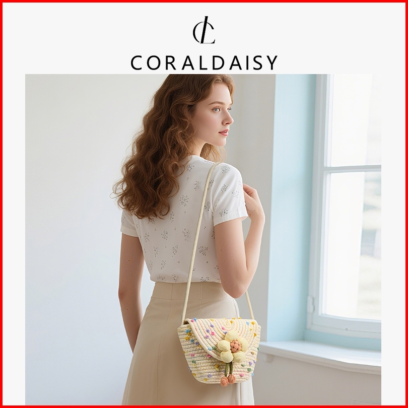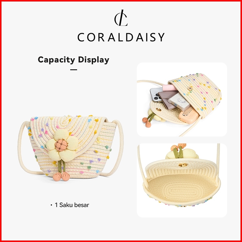 Coraldaisy Tas Wanita 2025 Lucu Bunga Anyaman Sling Bag Tali Panjang Tas Selempang Warna Tas Bahu