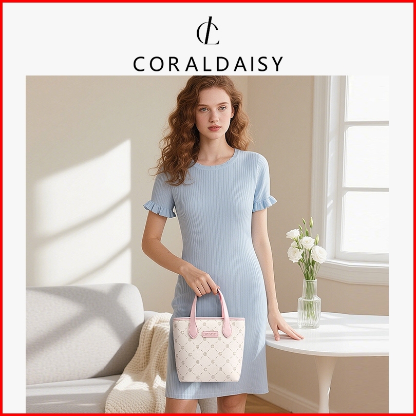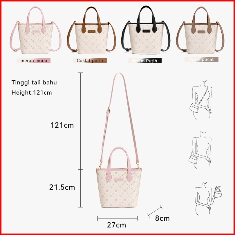 Coraldaisy Tas Wanita 2025 Terbaru Ember Tas Selempang Lucu Tali Panjang Sling Bag Ritslet Tas Bahu