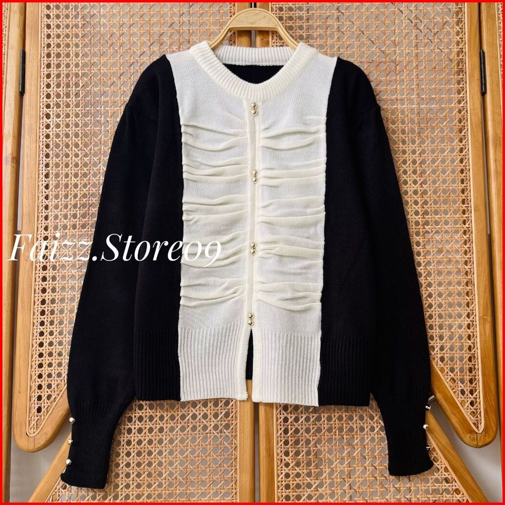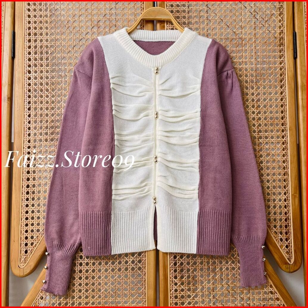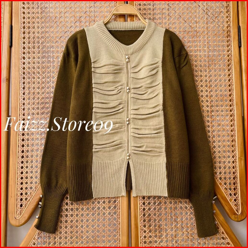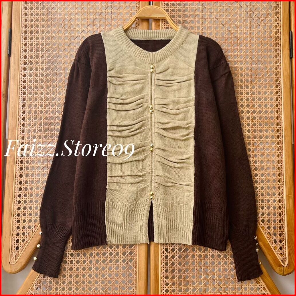 Liabiga Blouse Knit - Atasan Sweater Rajut Wanit Motif Kancing Kerah Bulat Lengan Panjang Korean Style