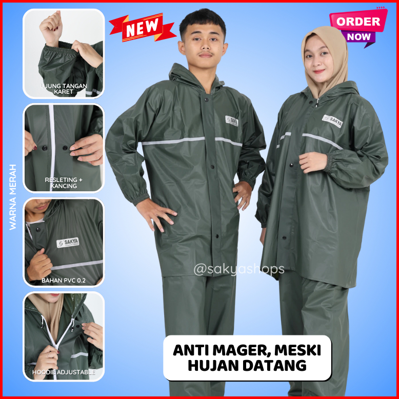 Original Raincoats By Sakya Jas Hujan Motor Setelan Jaket Celana Pria Wanita Pvc 0.2 Anti Rembes