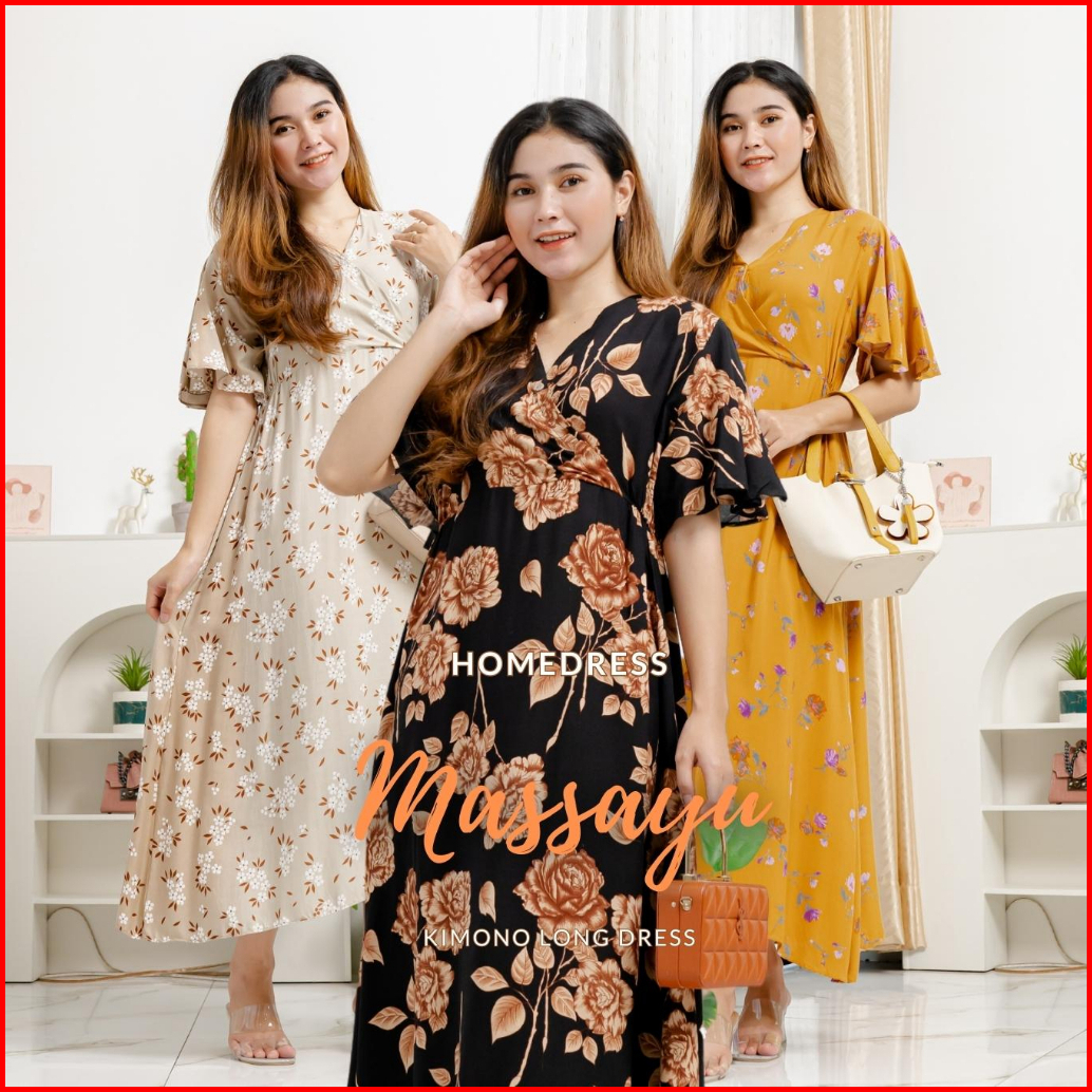 Ademinco Masayu Kimono Maxi Dress Rayon Reactive Daster V-neck Busui Bumil Friendly