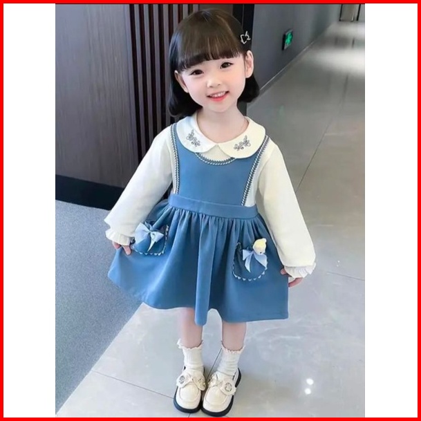 Dress Import Pocket Lucu Dress Korea Anak Dress Import Fashionable Anak Perempuan Usia 1-4 Tahun