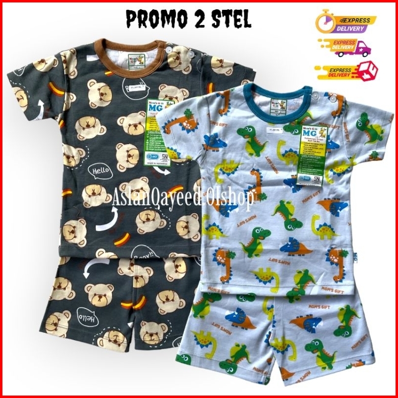 Promo 2 Stel Setelan Pendek Momsgift Baju Harian Anak Ternyaman Lembut Tidak Panas Untuk Balita Usia 0 Bulan Sampai 4 Ta