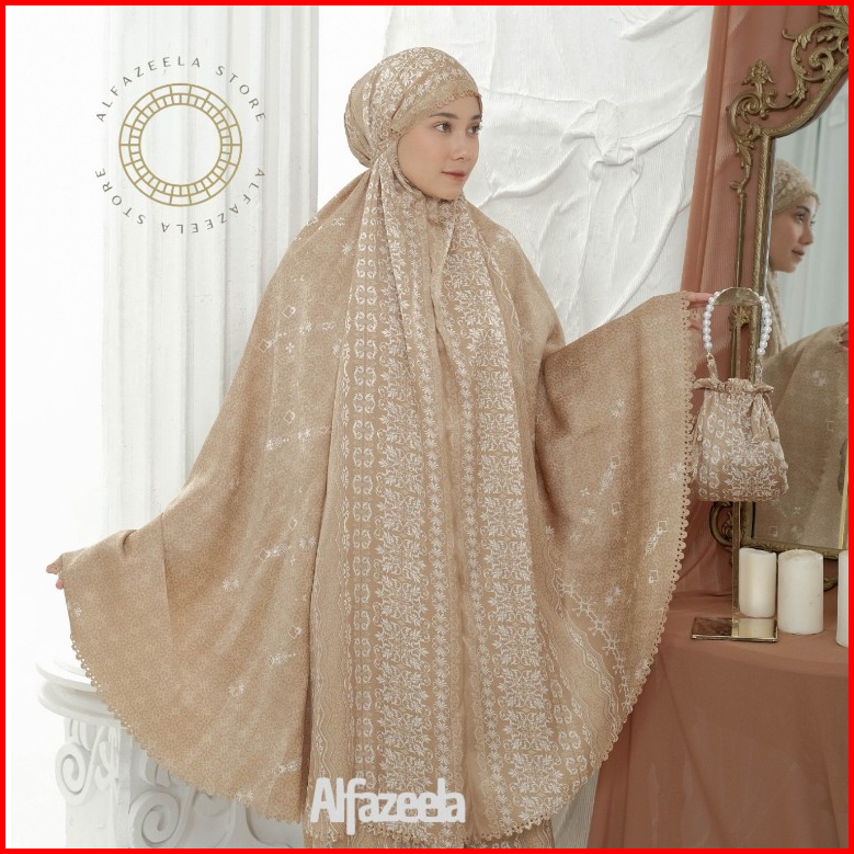 Alfazeela - Mukena Dewasa Santorini Silk 2in1 Lasercut Bella Series