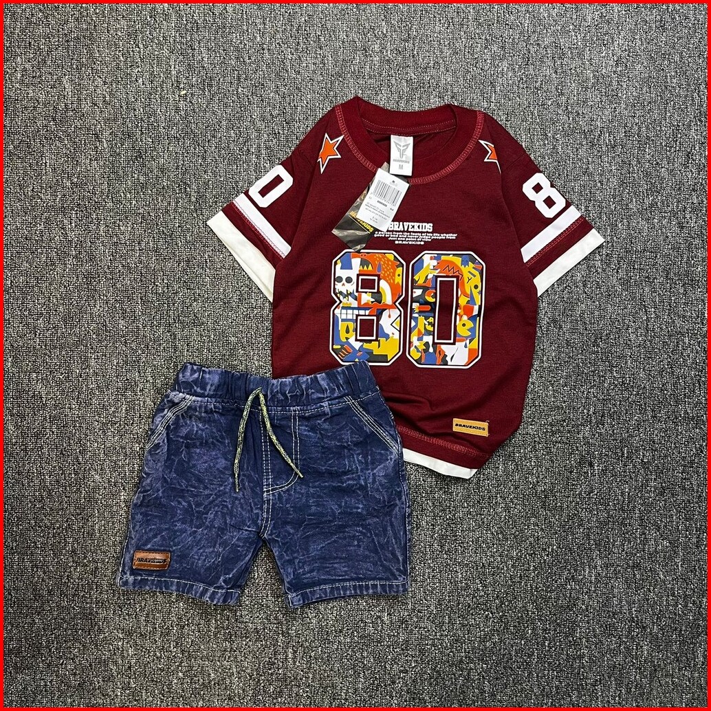 Bravekids Setelan T - Shirt Kaos Two Layer Baseball 42 Dan Celana Broadshort Premium Quality