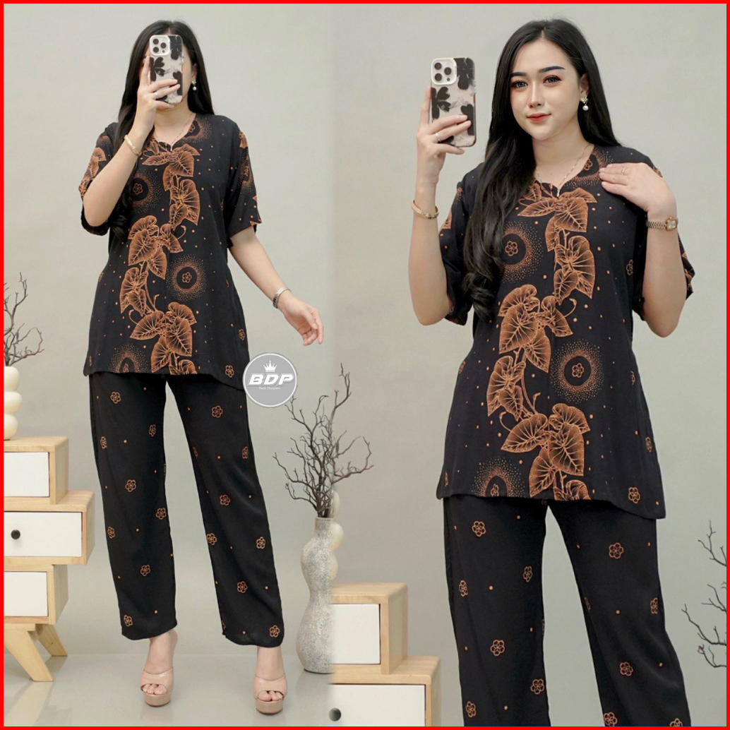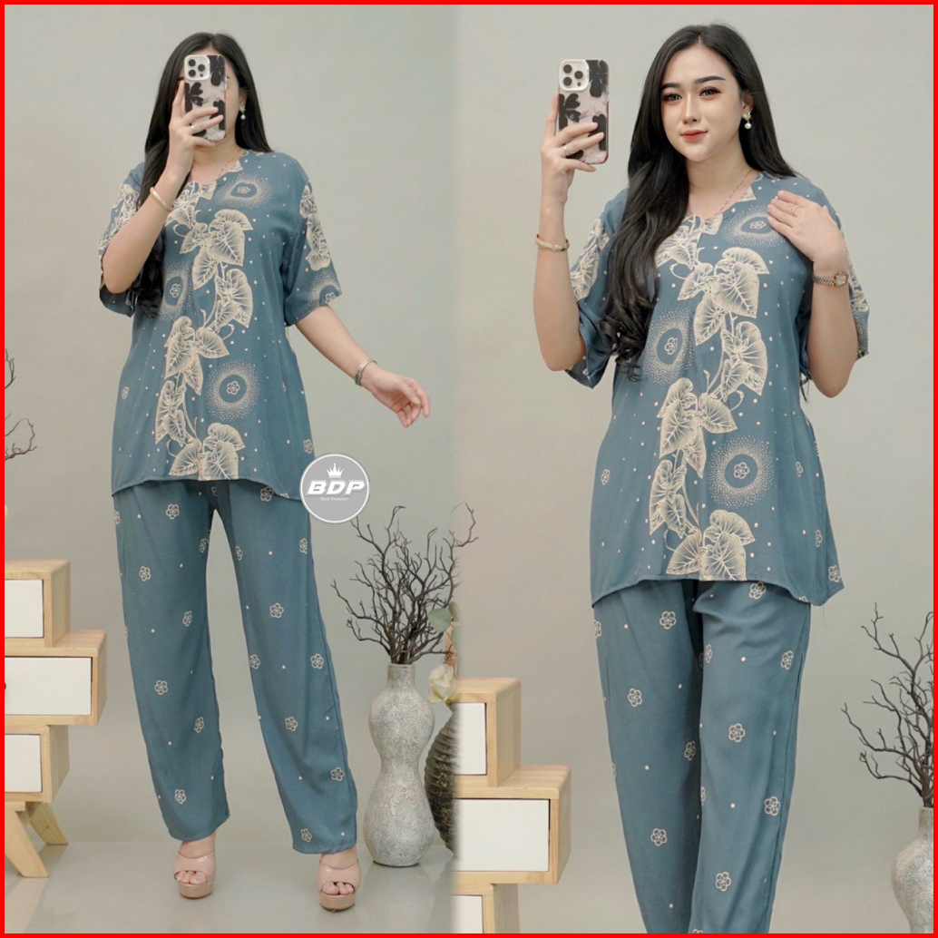 Dianputri - One Set Wanita Rayon Busui Resleting Depan Setelan Wanita Kekinian Stelan Wanita