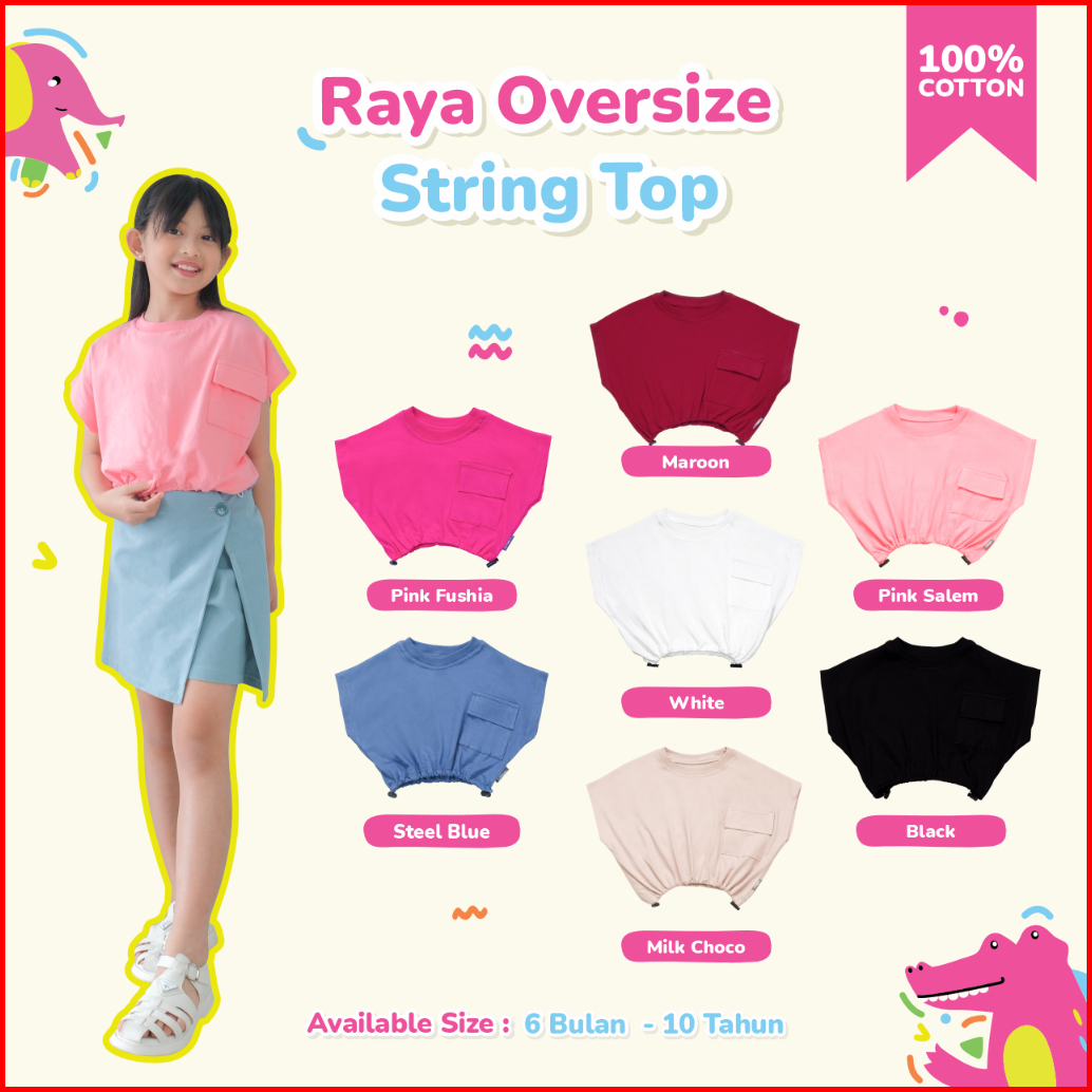 Little Me - Kaos Crop Anak Perempuan Raya String Top Usia 6 Bulan - 10 Tahun Kaos Katun Anak
