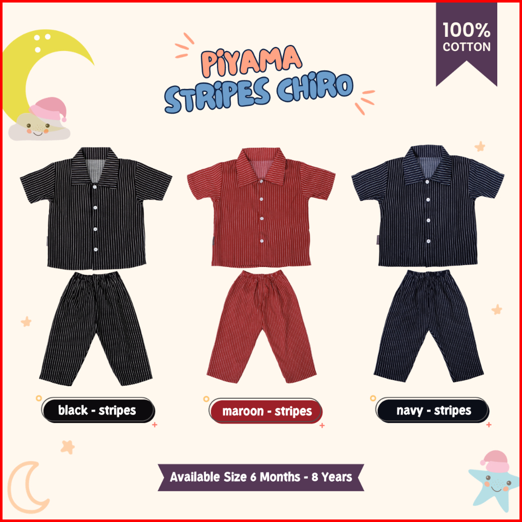 Little Me - Piyama Anak Salur Chiro Setelan Baju Tidur Rayon Bayi Dan Anak Usia 6 Bulan - 8 Tahun