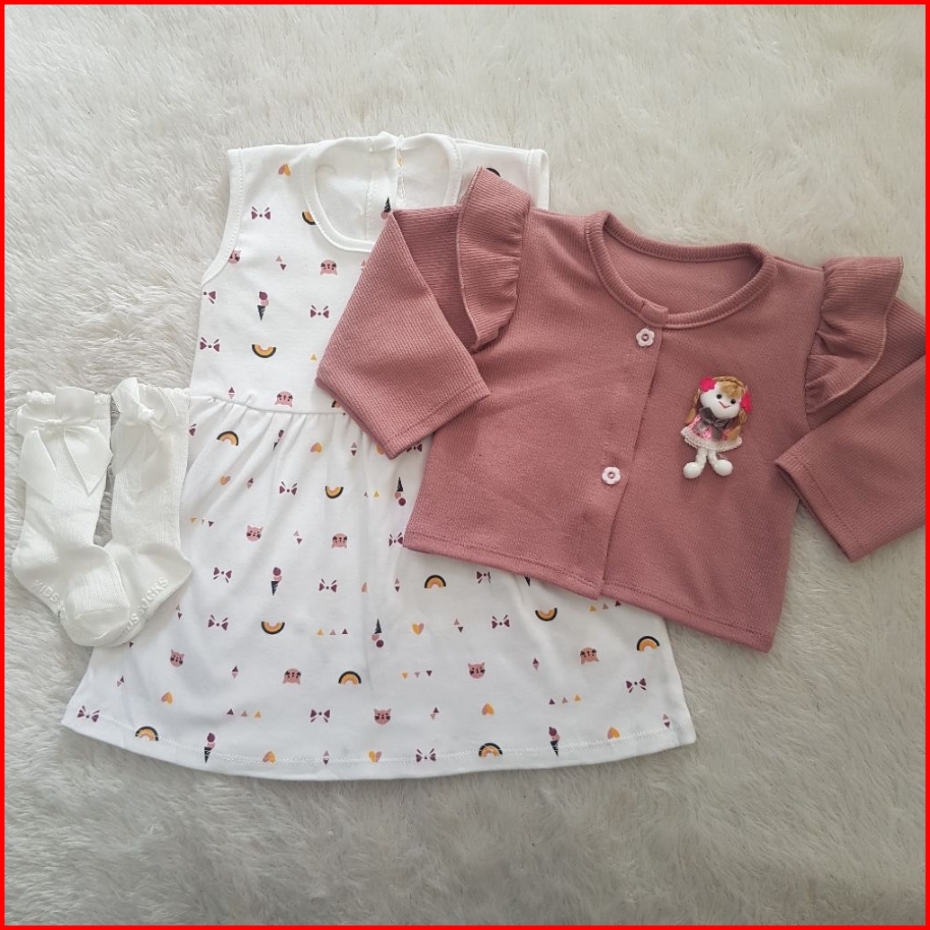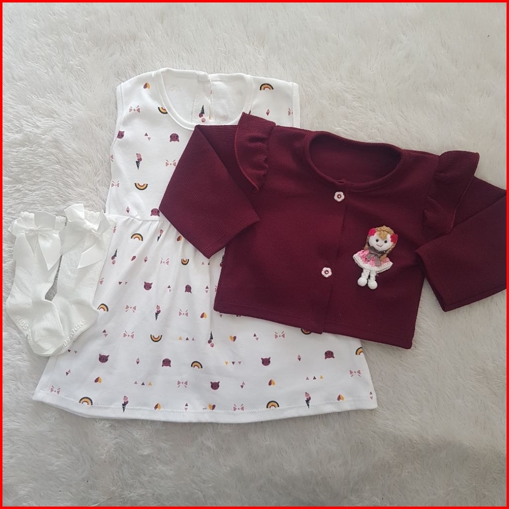 Doll Girl Cardigan Set Dress Ukuran 6-12 Bulan