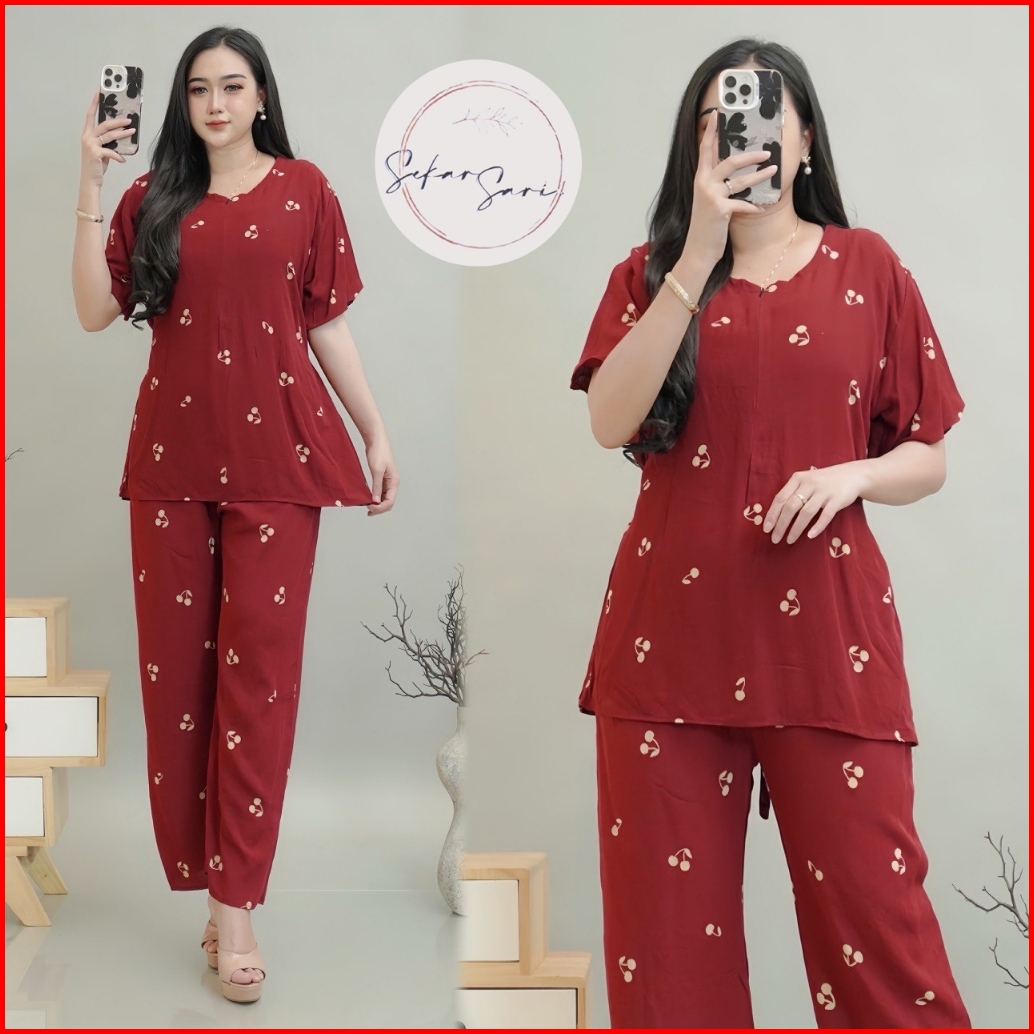 Setelan Cp Baju Tidur Santai Kekinian - Lengan Pendek Resleting Depan Rayon Halus