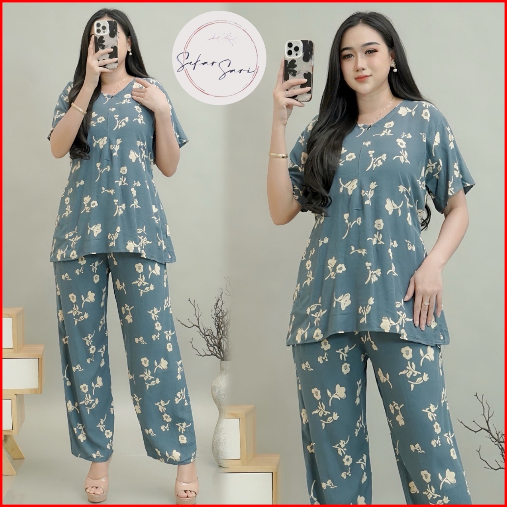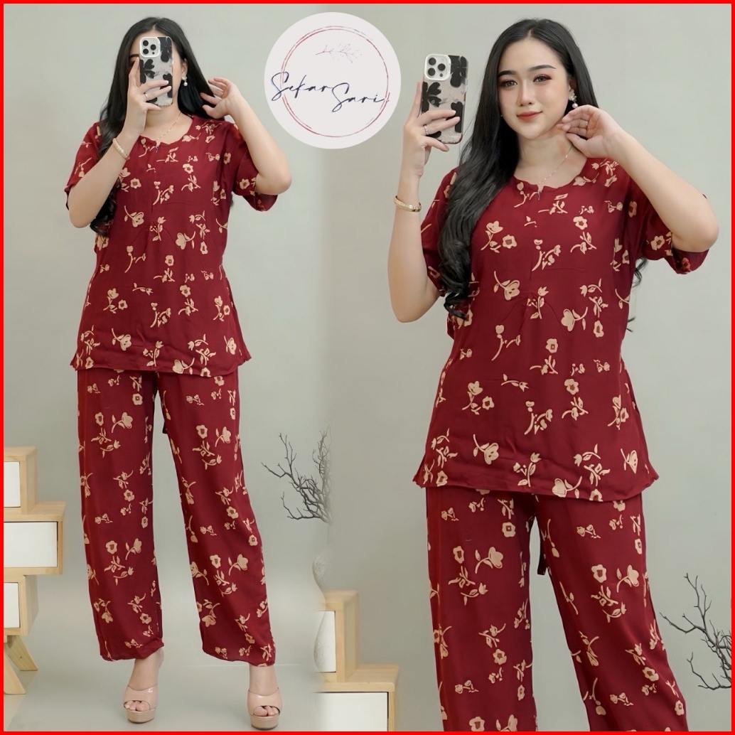 Setelan Cp Baju Tidur Santai Kekinian - Lengan Pendek Resleting Depan Rayon Halus