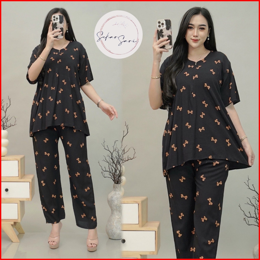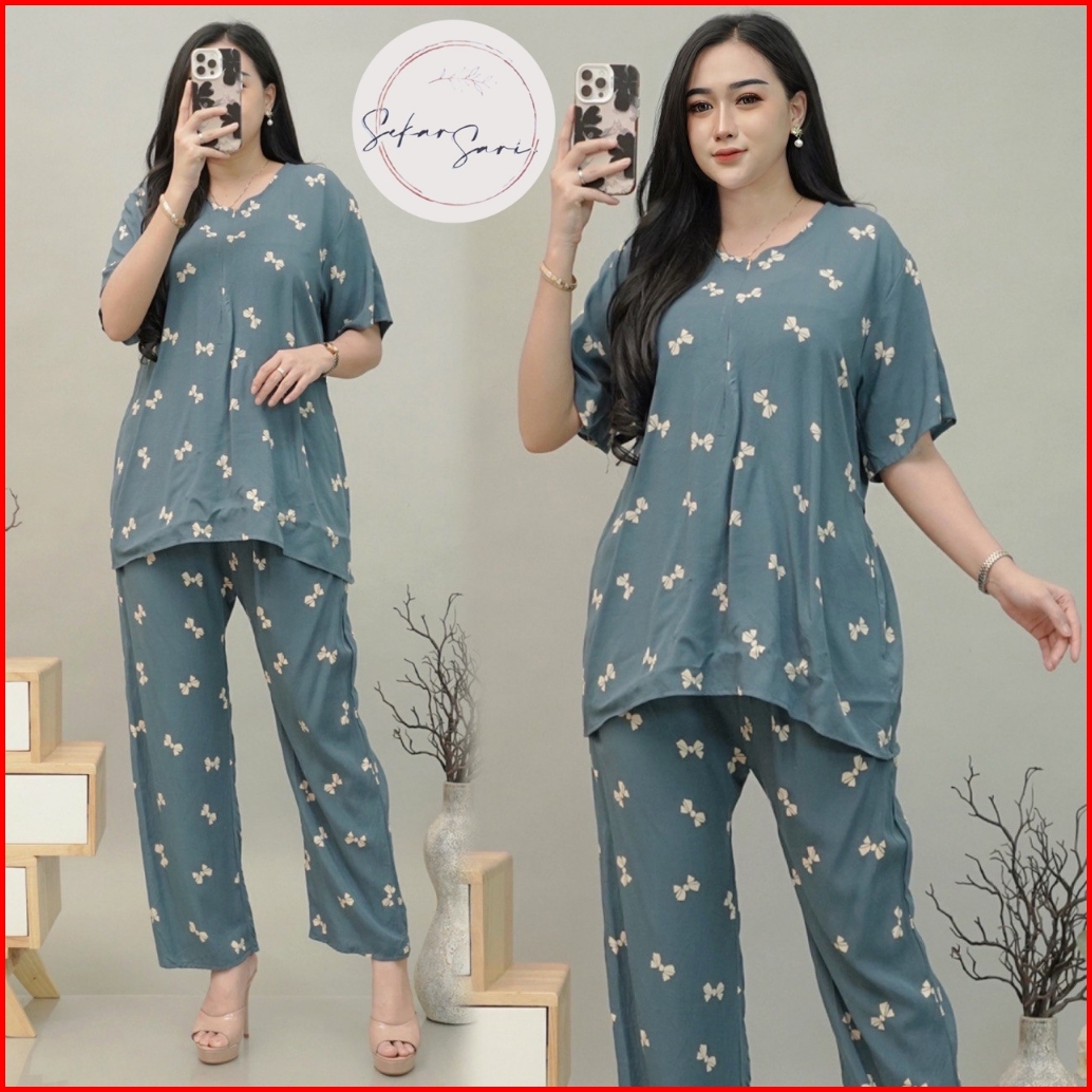 Setelan Cp Baju Tidur Santai Kekinian - Lengan Pendek Resleting Depan Rayon Halus