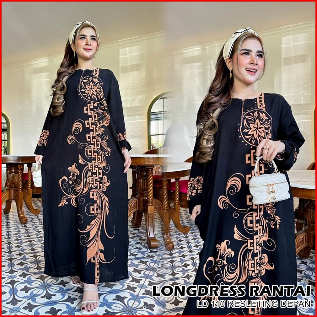 Longdress Cabutan Irengan Busui Ld 110 Daster Batik Lengan Panjang Kancing Depan Busui Adem Dan Halus