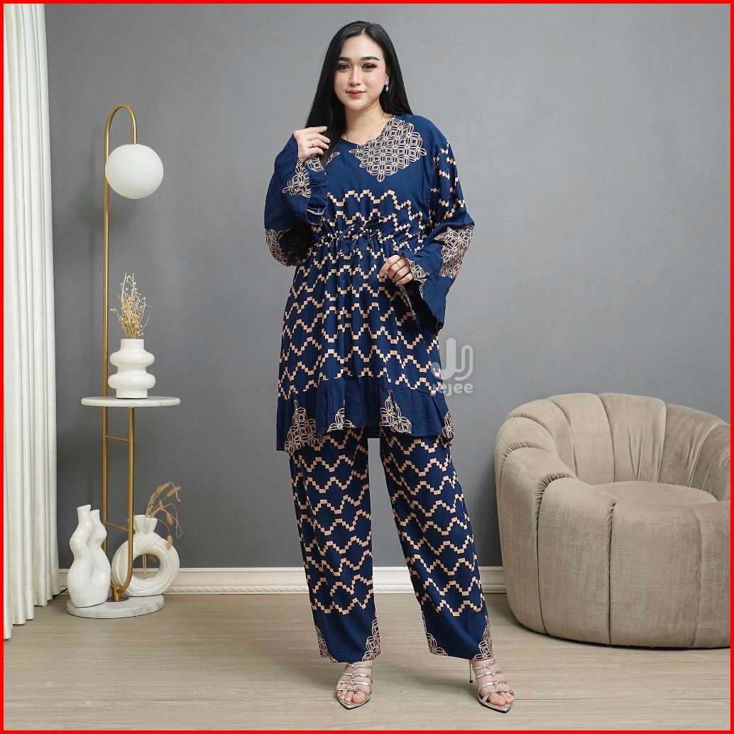Setelan Tunik Onna One Set Rayon Batik Busui Lengan Panjang Piyama Baju Tidur Modis