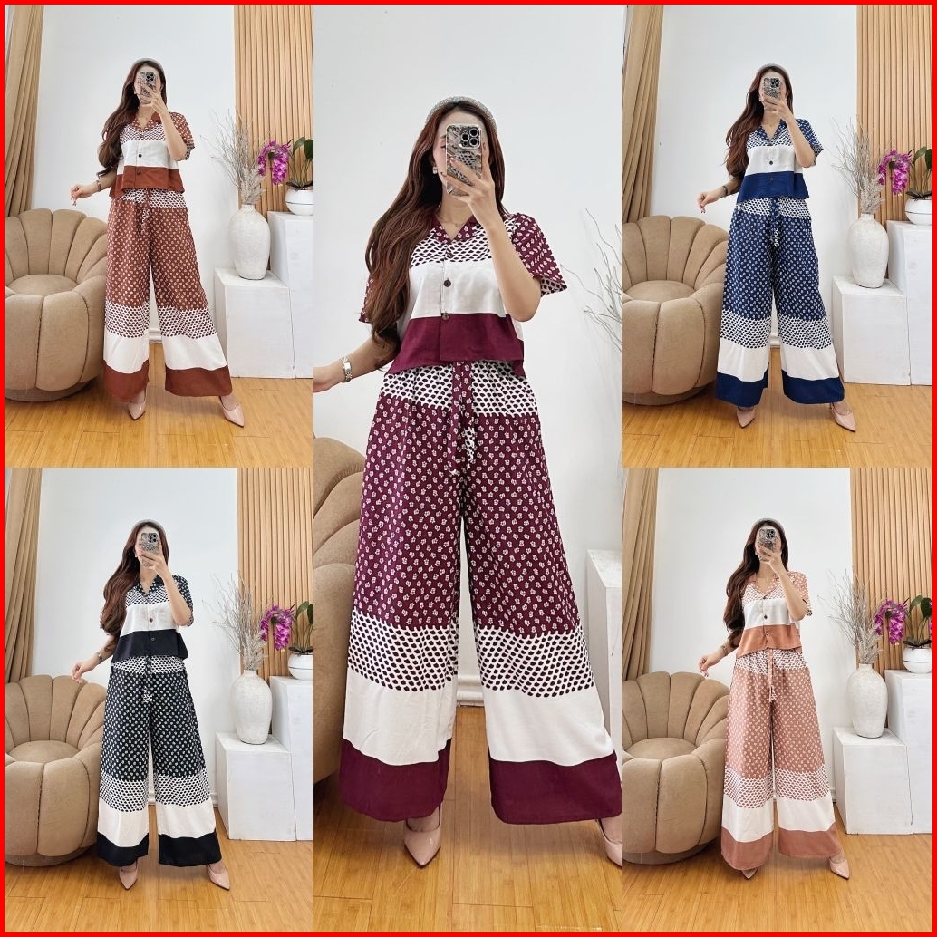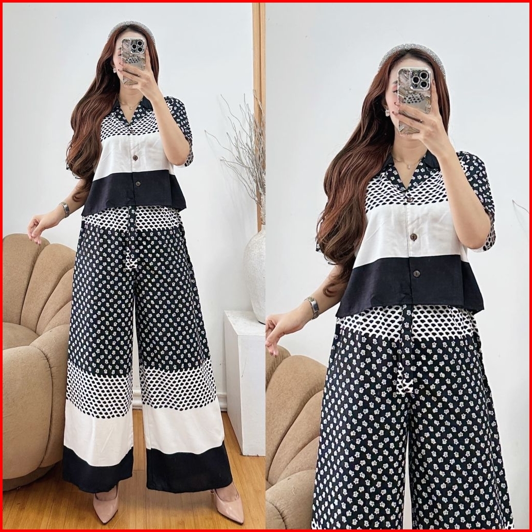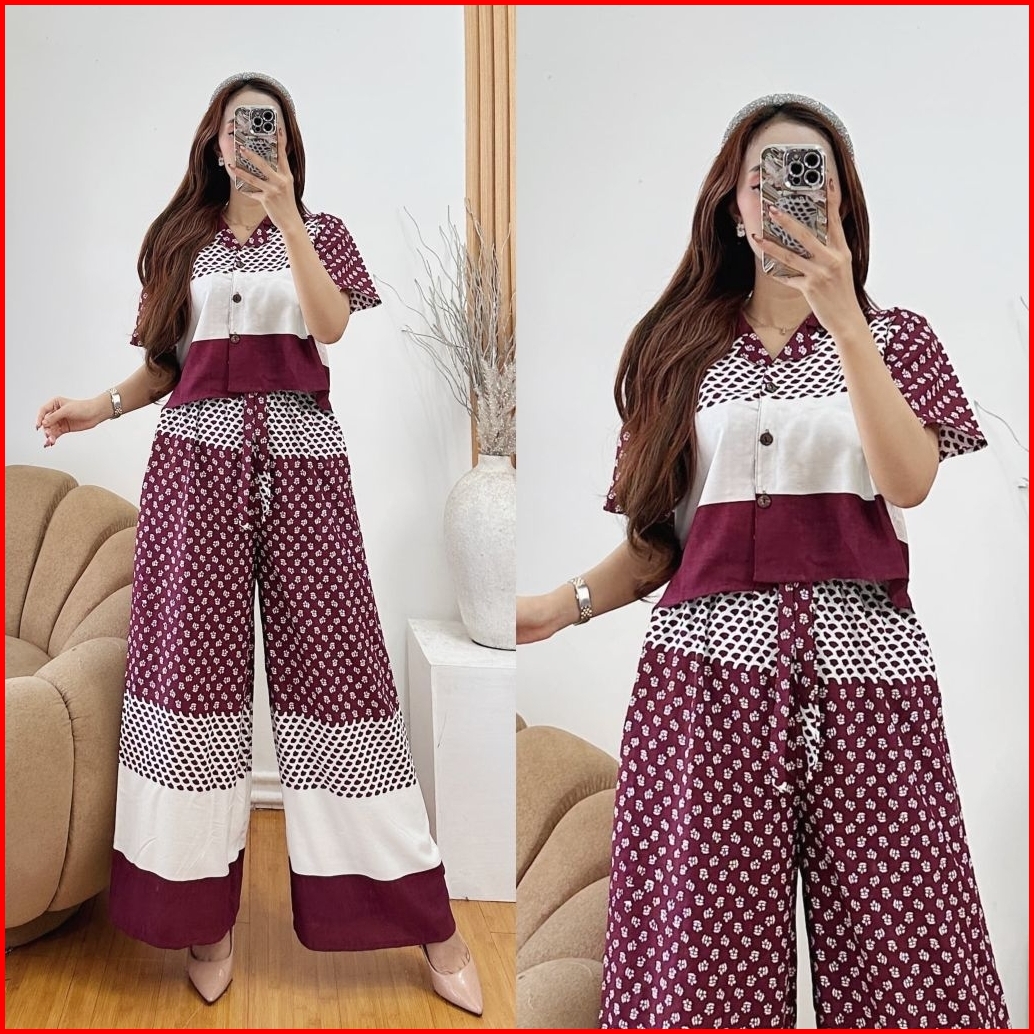 One Set Rayon Wanita Crop Top Kulot Highwaist Terbaru By Syahira Shop07