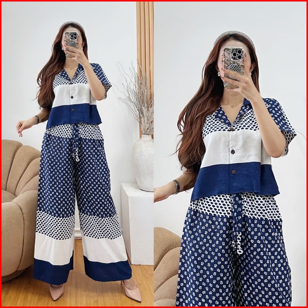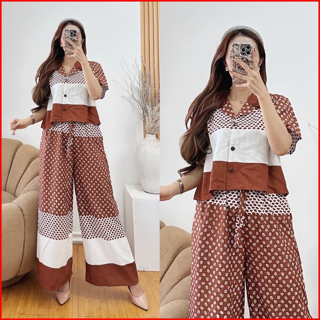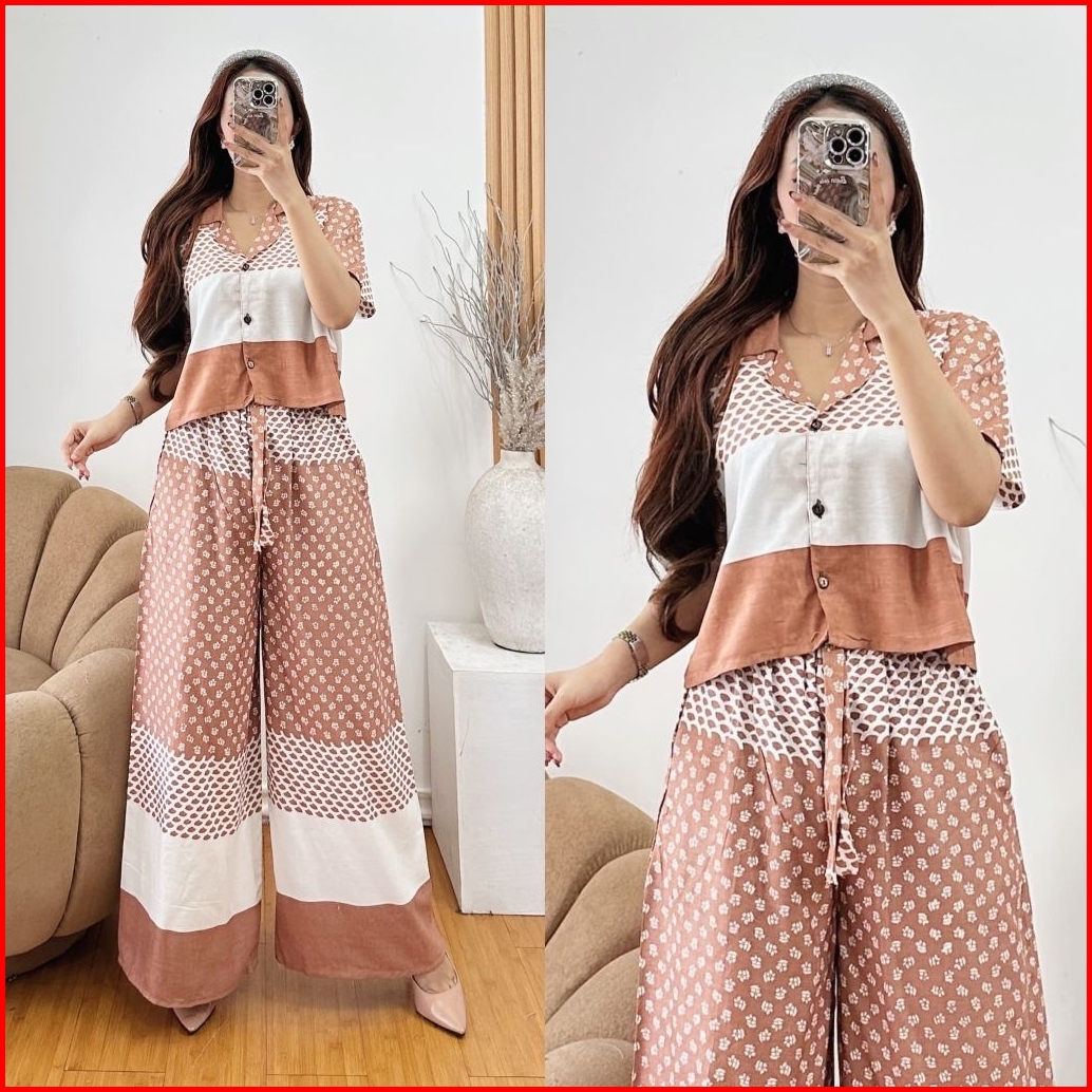 One Set Rayon Wanita Crop Top Kulot Highwaist Terbaru By Syahira Shop07