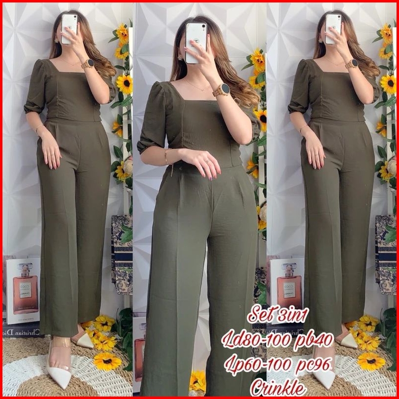 Moana One Set Crop Crinkle 3in1 Stelan Wanita Kekinian One Set Crop Kekinian One Set Terpopuler Murah