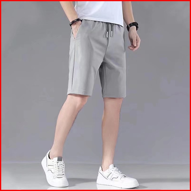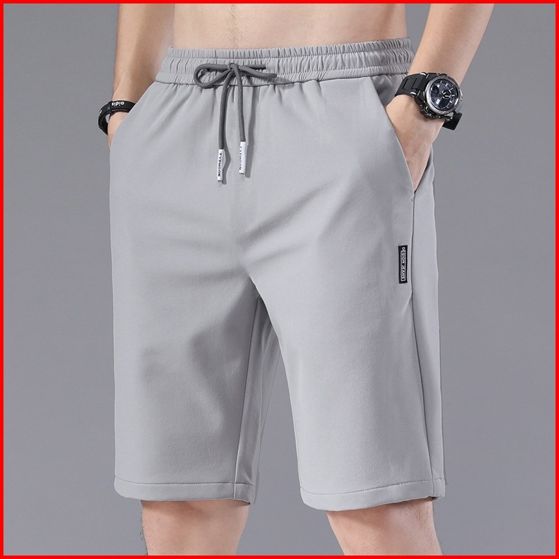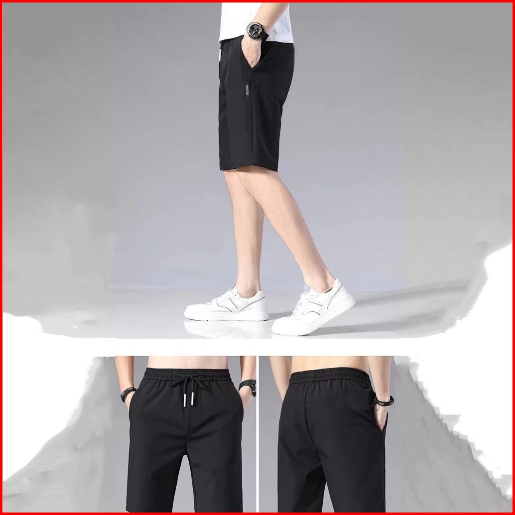 Larunshow Celana Pendek Pria Casual Tipis Adem Polyester Korean Style Chase Teknologi Icesilk Keren Slim Hitam Pinggang