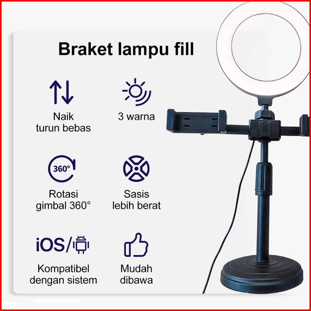 Dl Ring Light 16cm Tripod 2 Holder Hp Ring Light Tripod Mini Stand Hp Stream Selfie Make Up Vlog Lampu