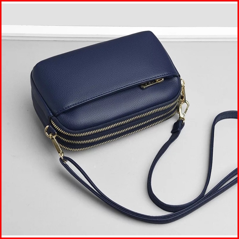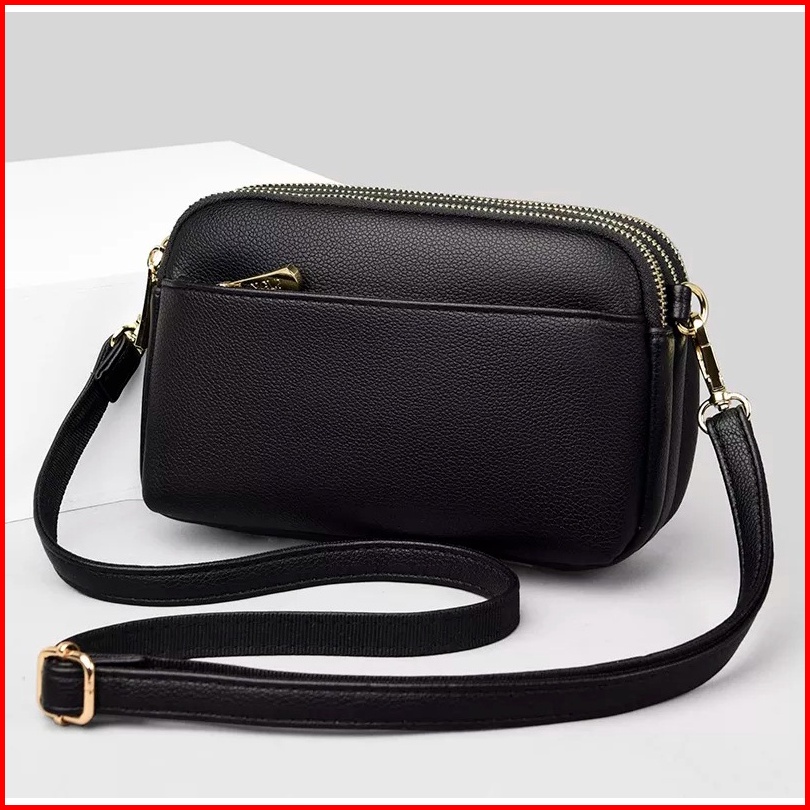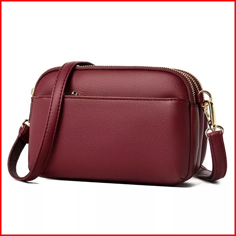 Alinesia Endzi - Selempang Wanita Mini 4 Resleting Bahan Kulit Pu Banyak Warna Bisa Untuk Dompet Dan Hp Selempang Wanita