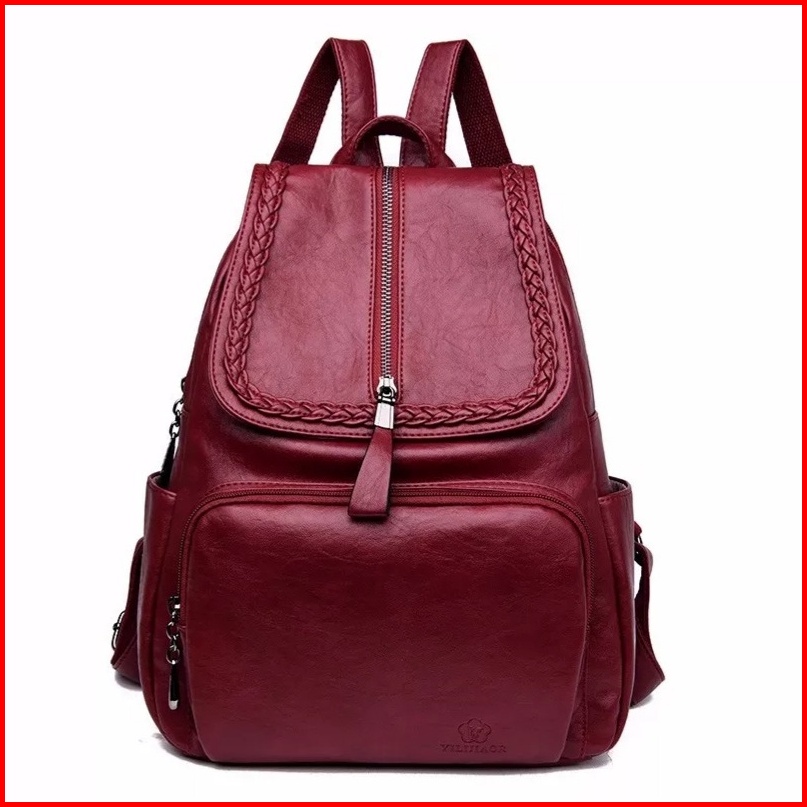 Alinesia Azip - Ransel Wanita Model Anyam Ransel Wanita Untuk Remaja Ibu-ibu Ransel Bahan Kulit Pu Warna Hitam