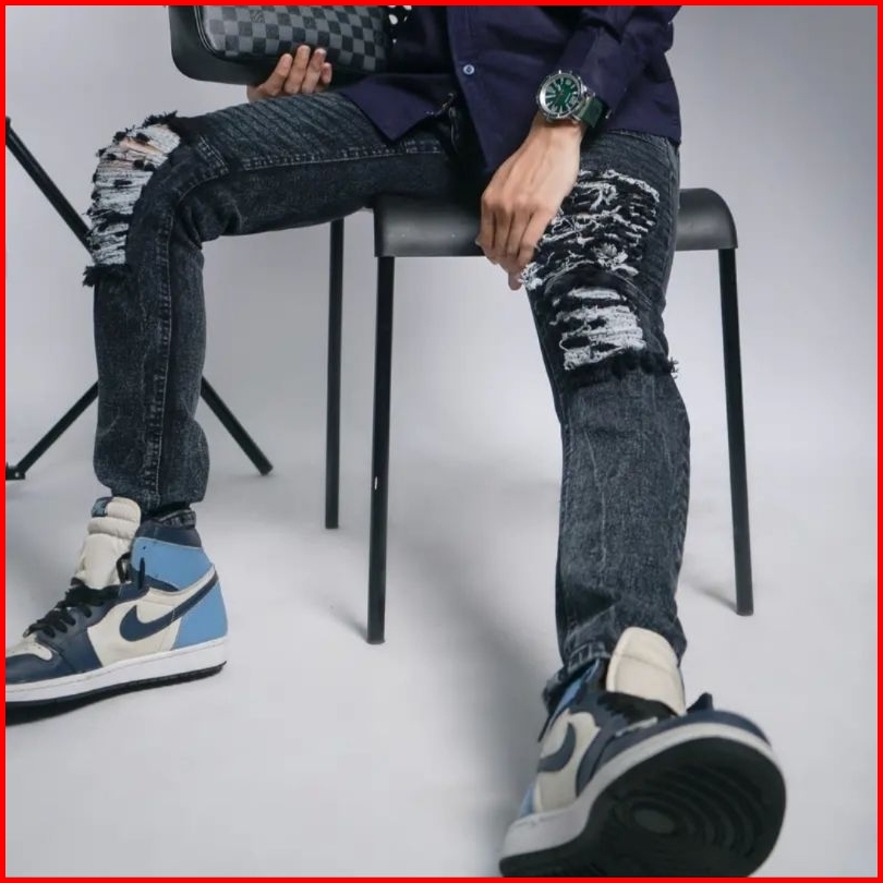 Celana Pria Distro Jeans Bikers Rider Ripped Slim Fitting