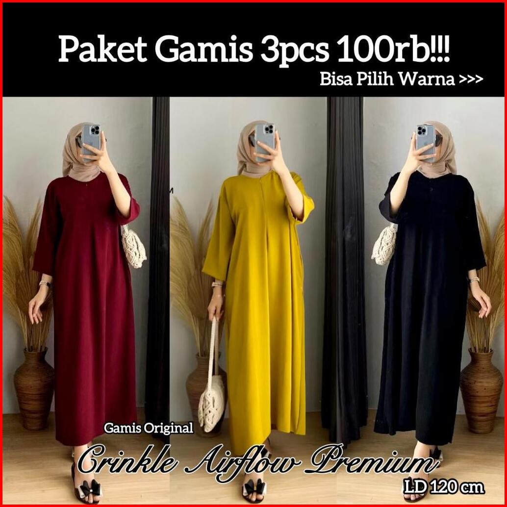 Paket 3pcs Daster Gamis Crinkle Airflow Ld 120cm Jumbo Lengan 3 4