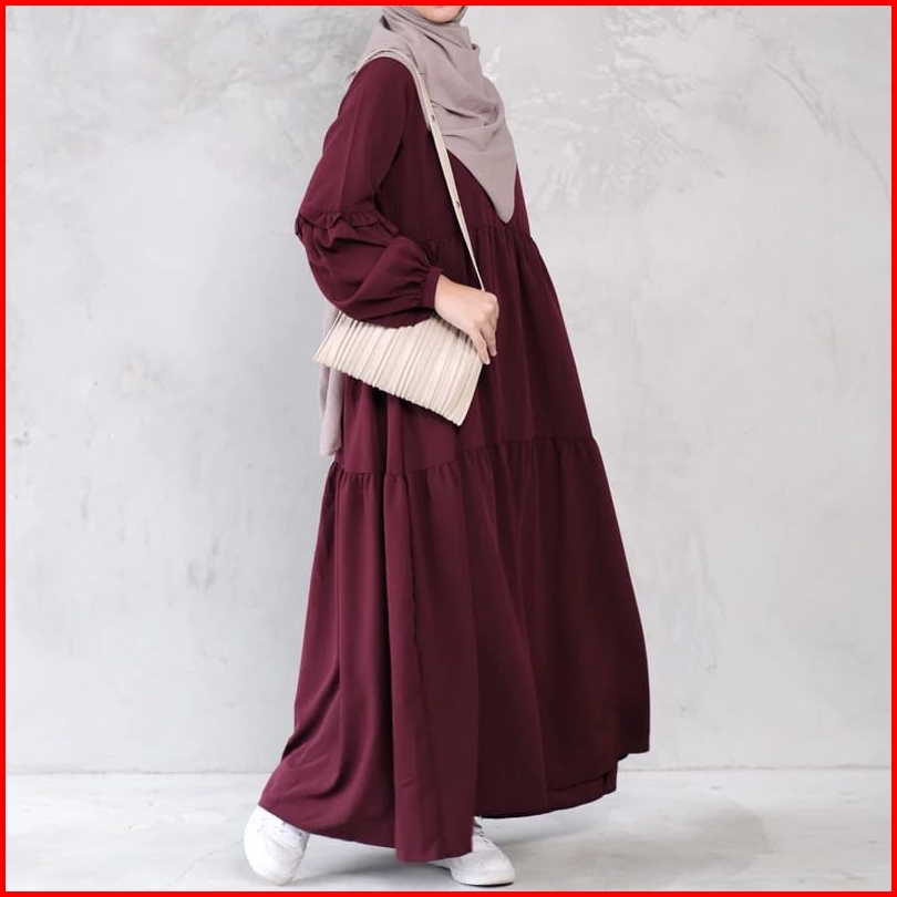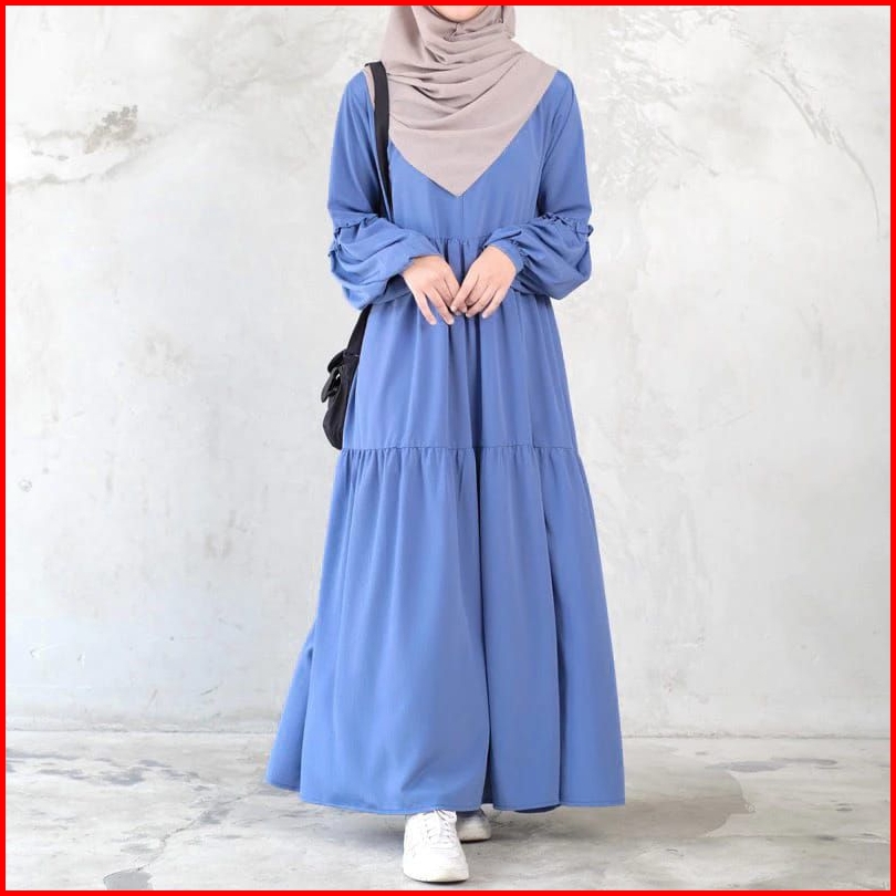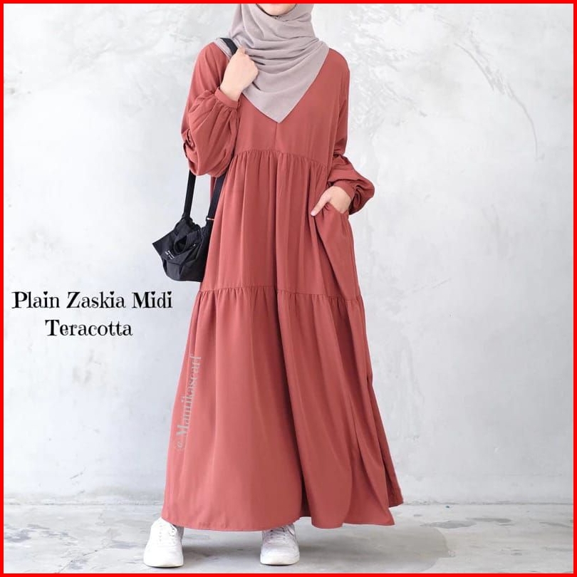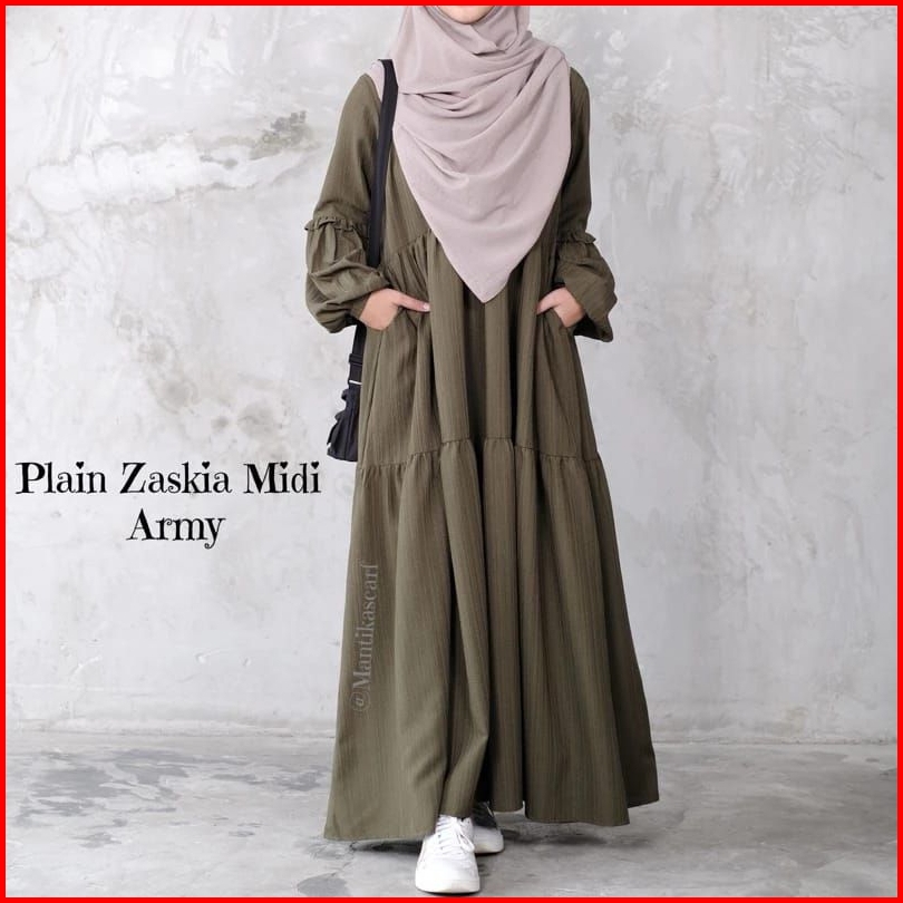 Zaskia Midi Plain Crincle Airflow Gamis Remaja Terbaru Serut Susun Viral Kekinian