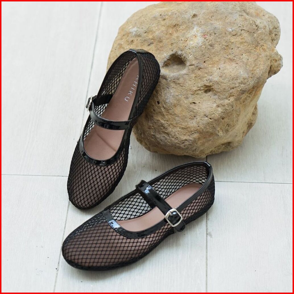Sahiku-candice Mesh Flat Shoes Sepatu Fishnet Mary Jane Flatshoes Jaring Net Korean Style Wanita